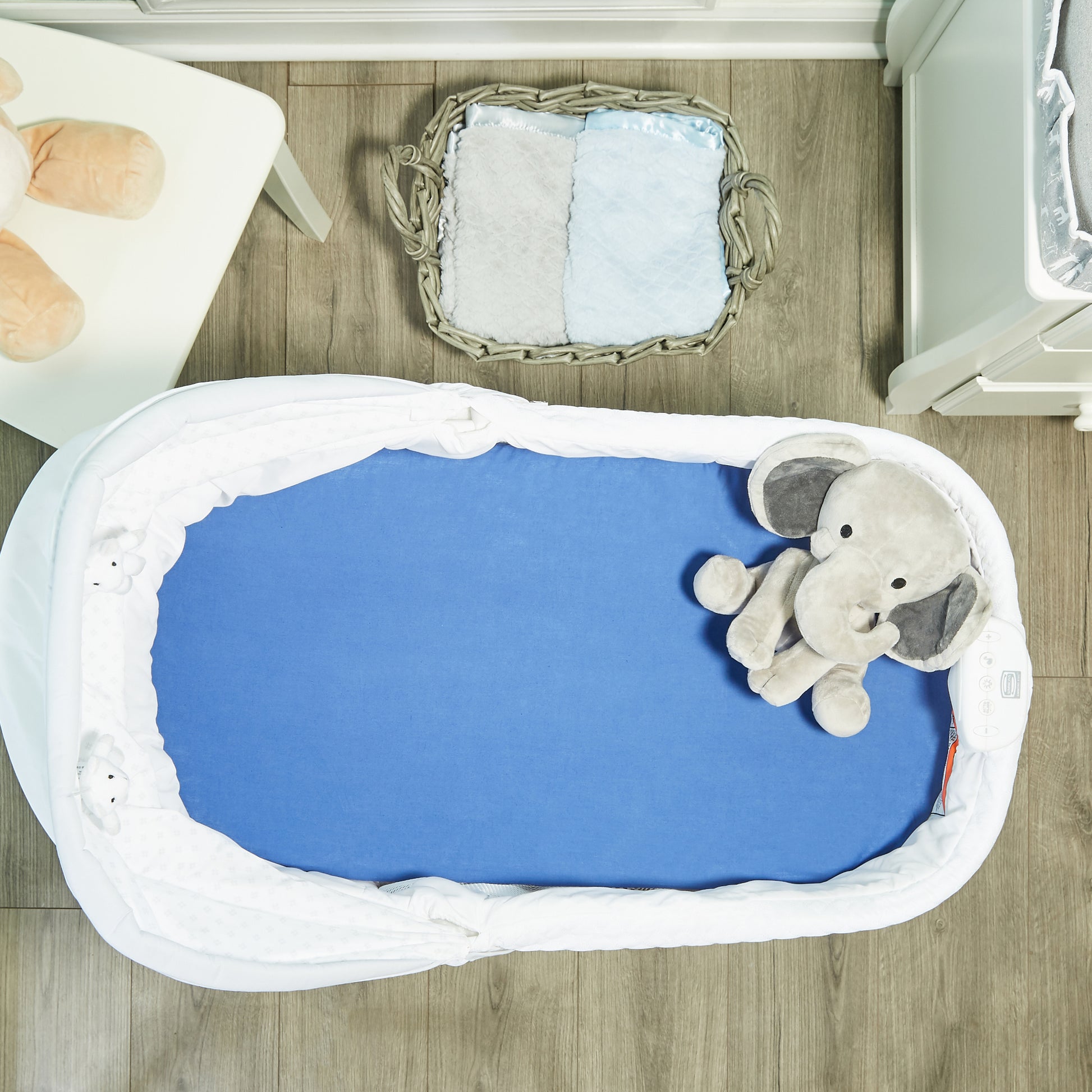 - FITS A STANDARD BASSINET MATTRESS: Oval in shape with straight sides, this bassinet fitted sheet fits virtually all bassinet mattress pads. It’s stretchy enough to easily cover the pad and safely light flat while firmly staying in place