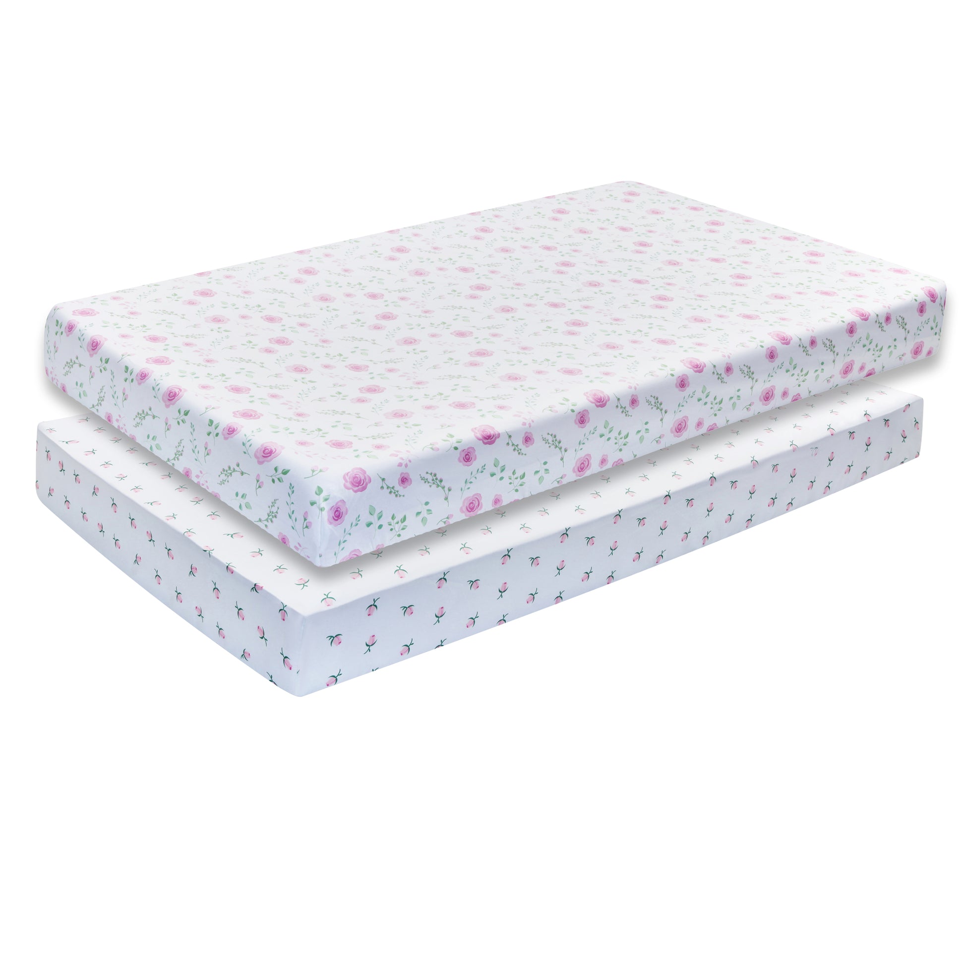 2 Pack Fitted Girls Crib Sheet - Floral/Rosebud