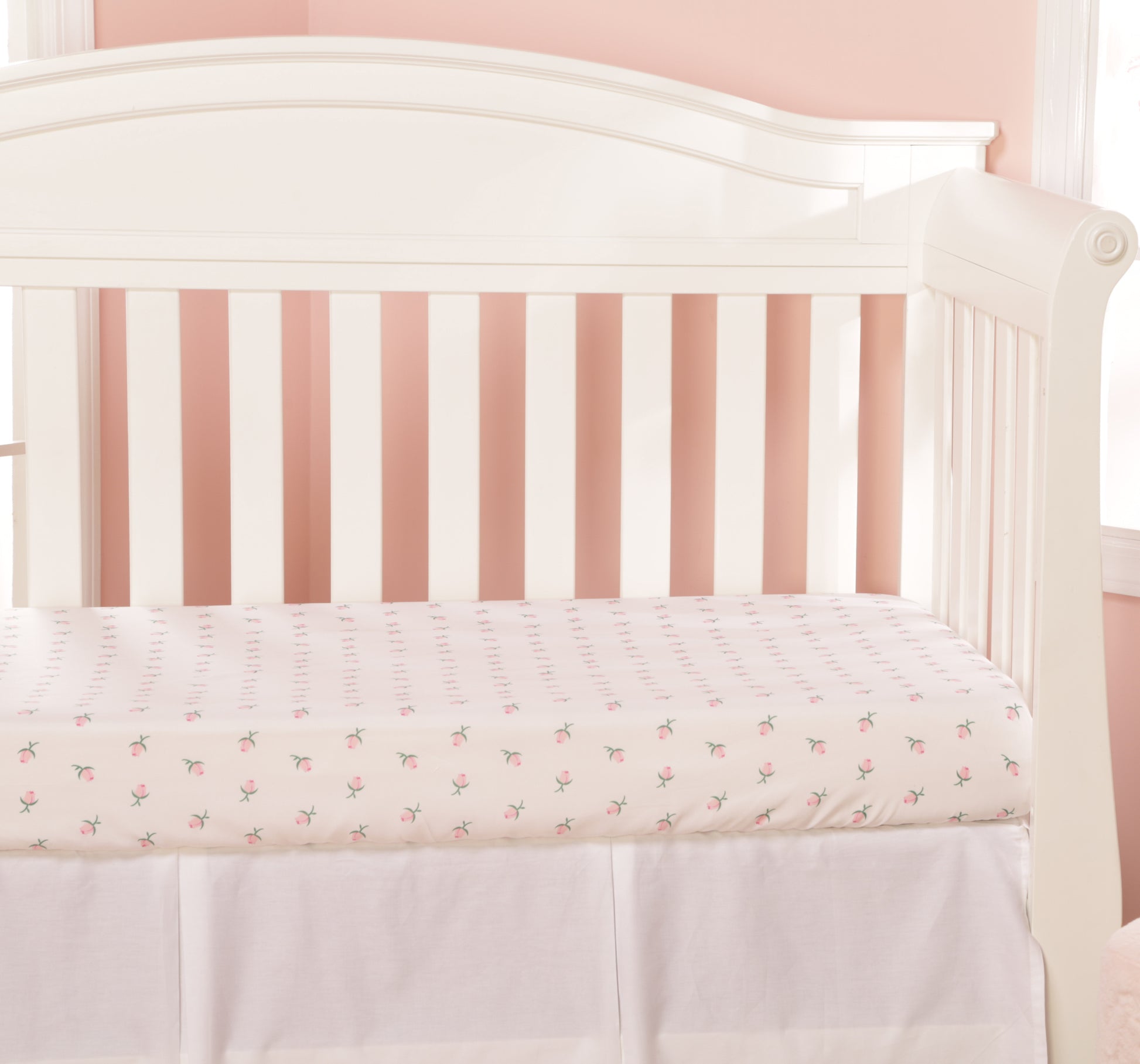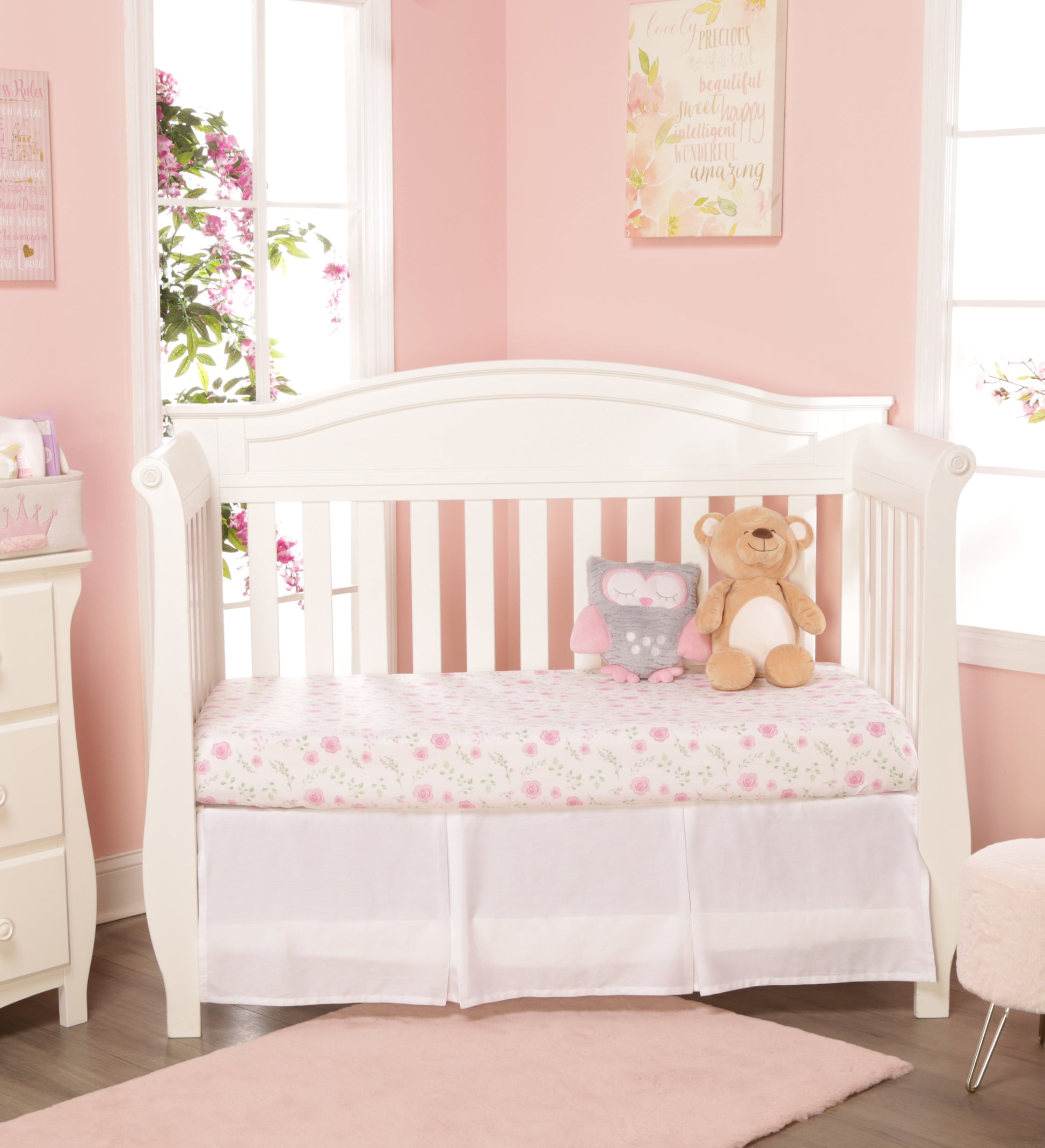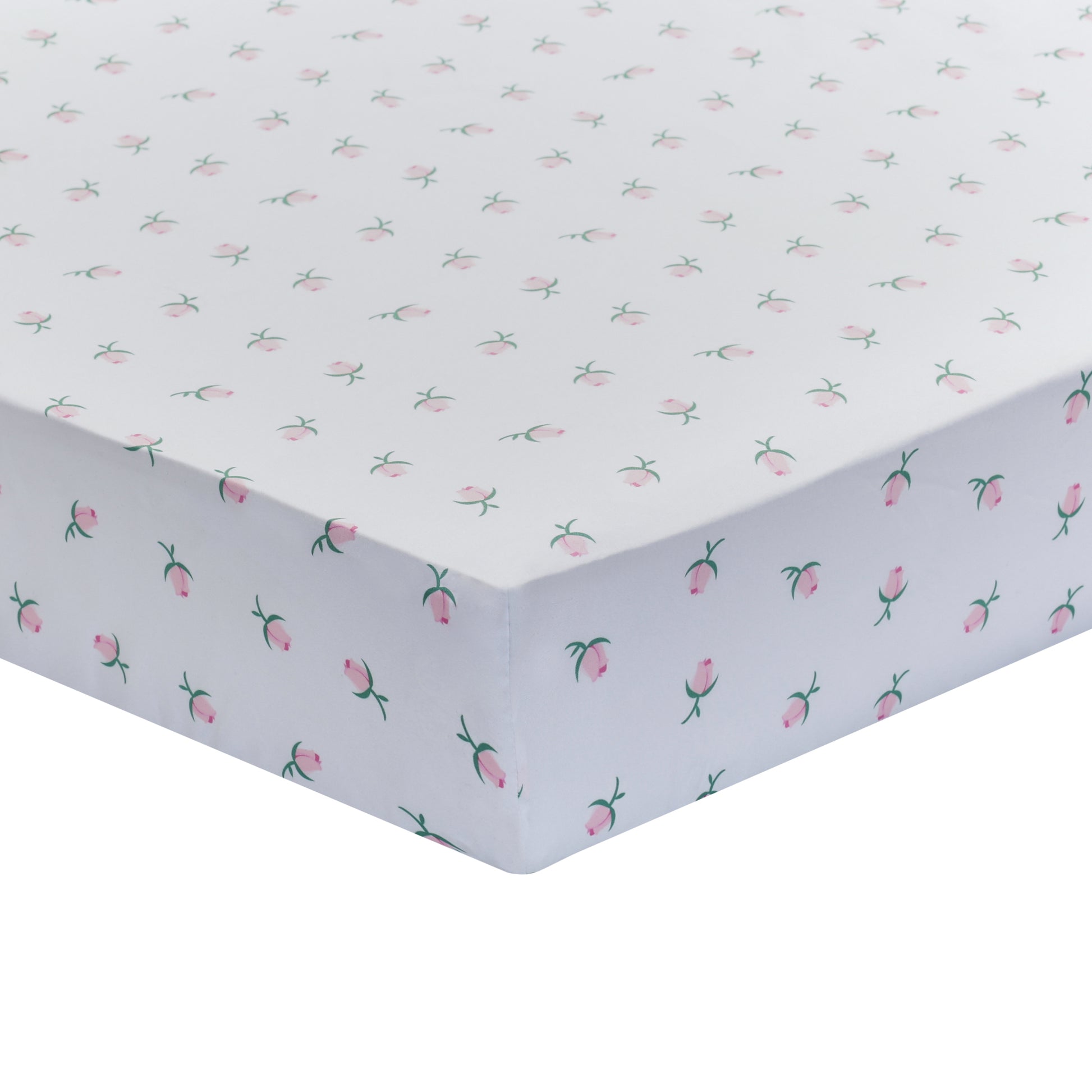 An essential addition to any nursery fit for a princess, this Floral and Rosebud matching set of fitted girls crib sheets is a must have! Made of soft and breathable microfiber fabric, these machine washable baby girl sheets have secure elastic trim for safe and easy use and are a perfect fit for a standard crib mattress (52 in. x 28 in.).