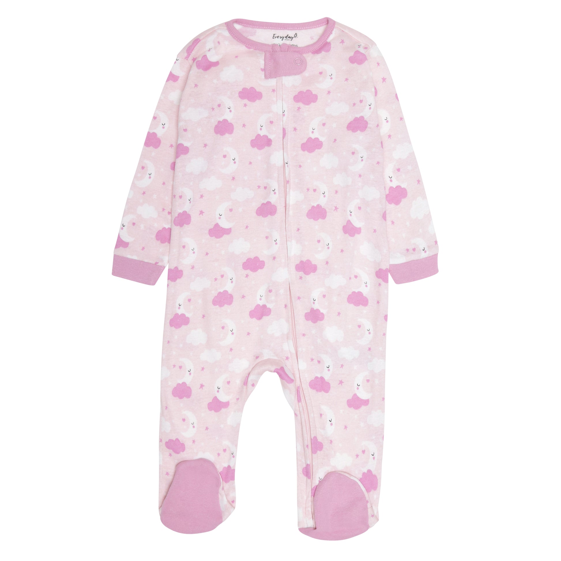 4 Pack Baby Girl Moons and Clouds Sleepers with Zippers - Newborn