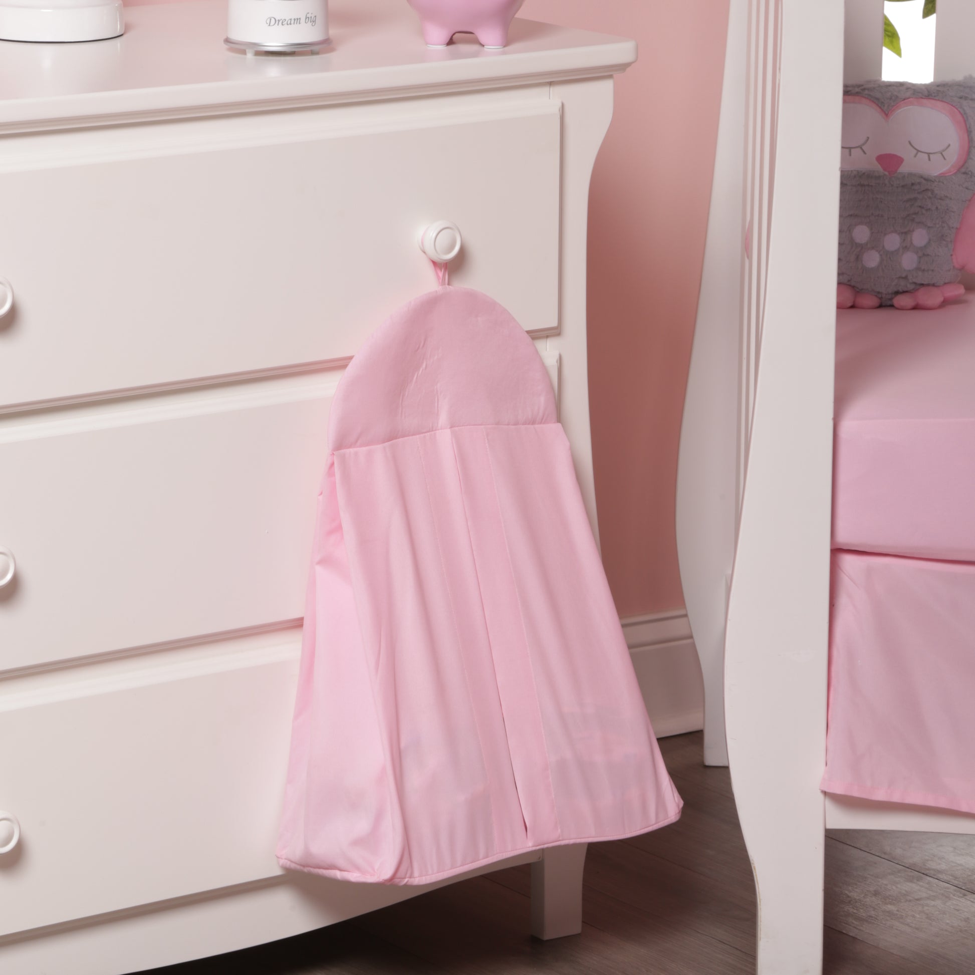 - ALSO INCLUDES A HANGING DIAPER ORGANIZER: In coordinating light pink, the diaper stacker will keep the nursery neat and tidy, with diapers in easy reach.