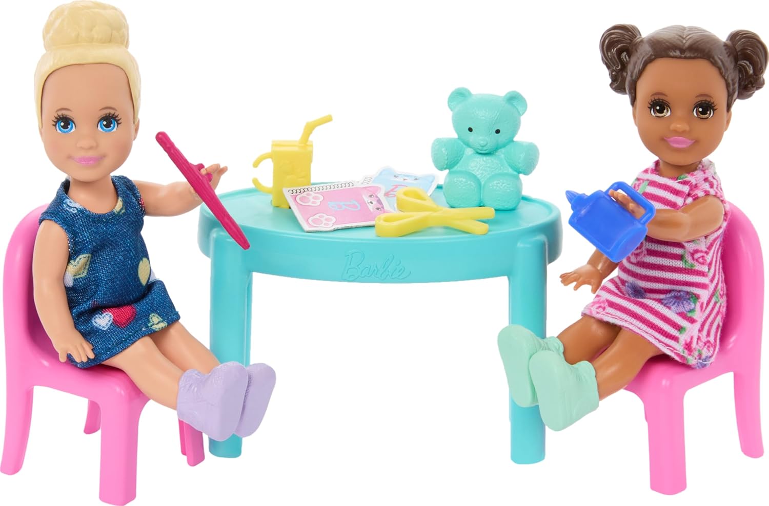 The Barbie I Love School Teacher Playset lets kids step into the classroom and create their own learning adventures. Barbie teaches her two student dolls with a colorful setup that includes bookshelves, backpacks, art supplies, and classroom essentials. With bright details and multiple accessories, this set encourages imaginative storytelling, role-play, and hours of pretend school fun. Perfect for little learners who love teaching, creativity, and all things Barbie.