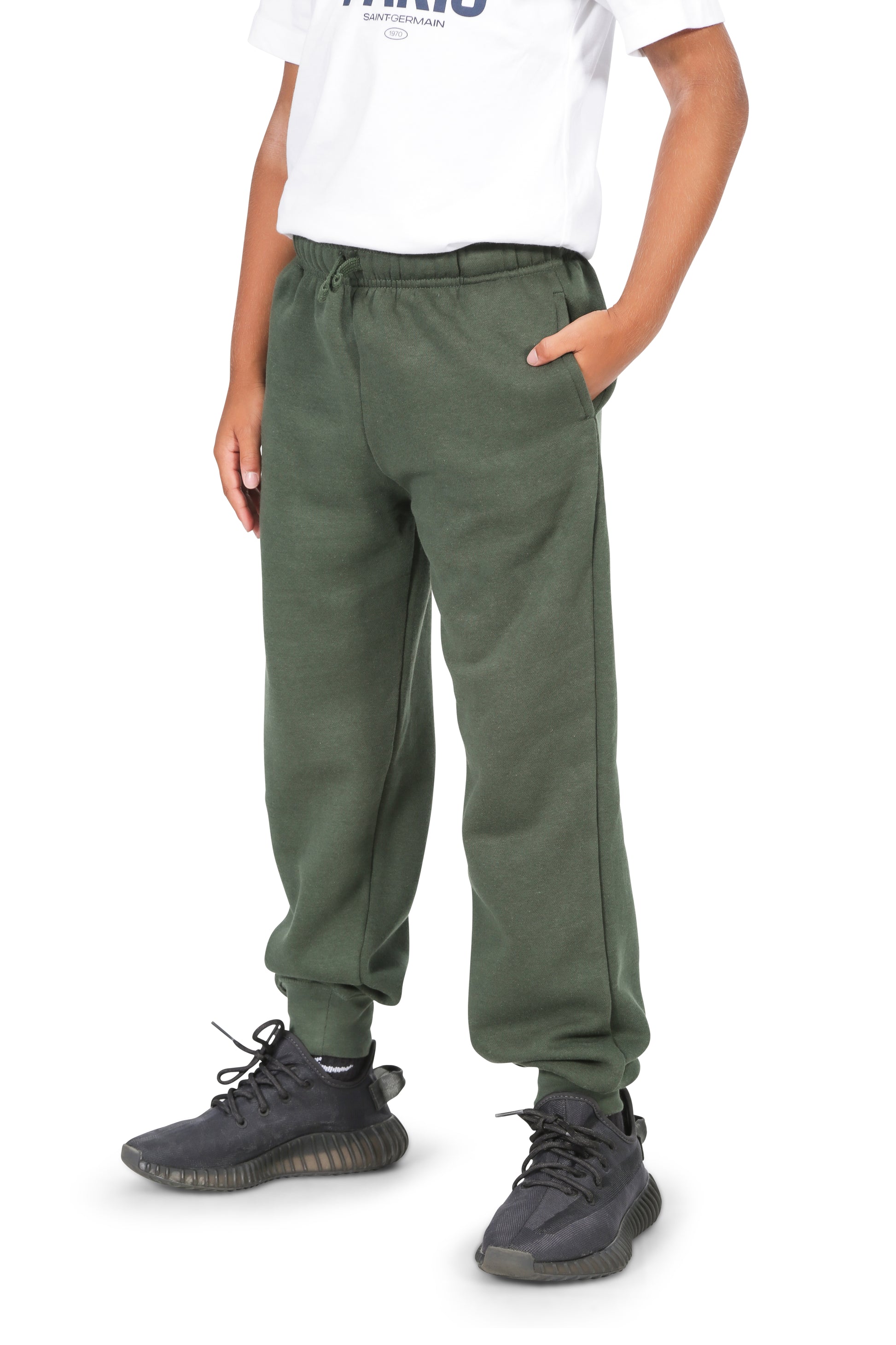 Whether he’s shooting hoops outside or playing video games inside on a frosty winter day, these green jogger sweatpants deliver unbeatable comfort and style. Perfect for lounging with family during movie night or running errands with mom, these joggers offer the ultimate comfort for everyday adventures. These joggers take pockets to the next level! From stashing his phone and candy to keeping his hands warm in the plush fleece lining, they’re practical and cozy. Whether he's on the move or relaxing, the convenient pockets make organizing his little essentials easier than ever. Bedtime just got an upgrade! These jogger sweatpants double as the ultimate PJ bottoms, keeping him warm and snuggly for restful night's sleep. Perfect for chilly nights and quick bathroom trips, they’re his go-to for sweet dreams and comfort that lasts till morning. Everyday Kids means serious quality! These green athletic fleece pants are designed to handle his rough-and-tumble active lifestyle. With a stretchy elastic waistband and durable stitching, they’re tough enough for play and comfy enough for all-day wear. Give him the active wear that can keep up with his active lifestyle, order one or more pairs of these Green Cotton Fleece Sweatpants today!