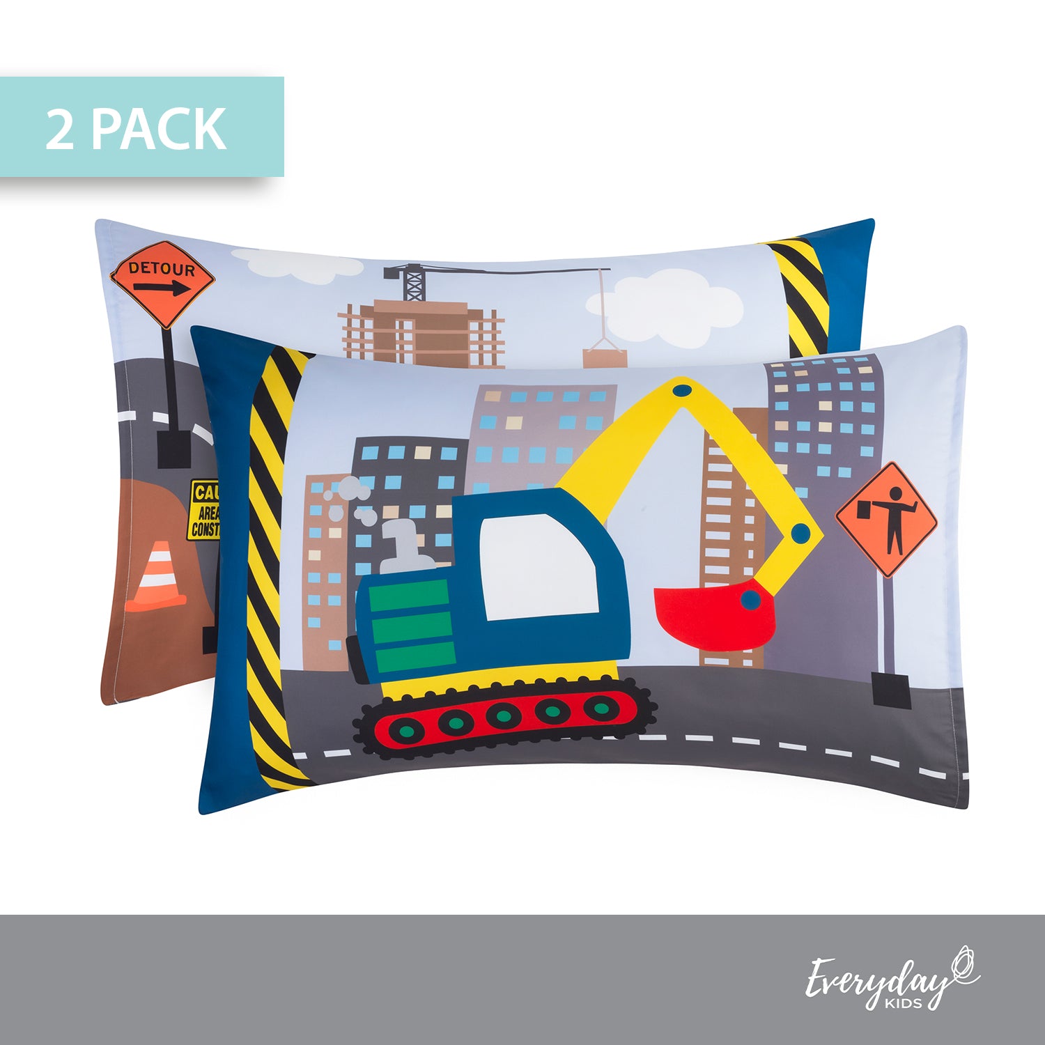 Our 2 Pack Standard Pillowcases in Construction design are perfect for any little boy’s twin / full size bed. Younger children will definitely love them. The material of these pillowcases is high-quality, breathable and fade resistant. The set creates a comforting and calming sleep environment to help kids get the rest they need.