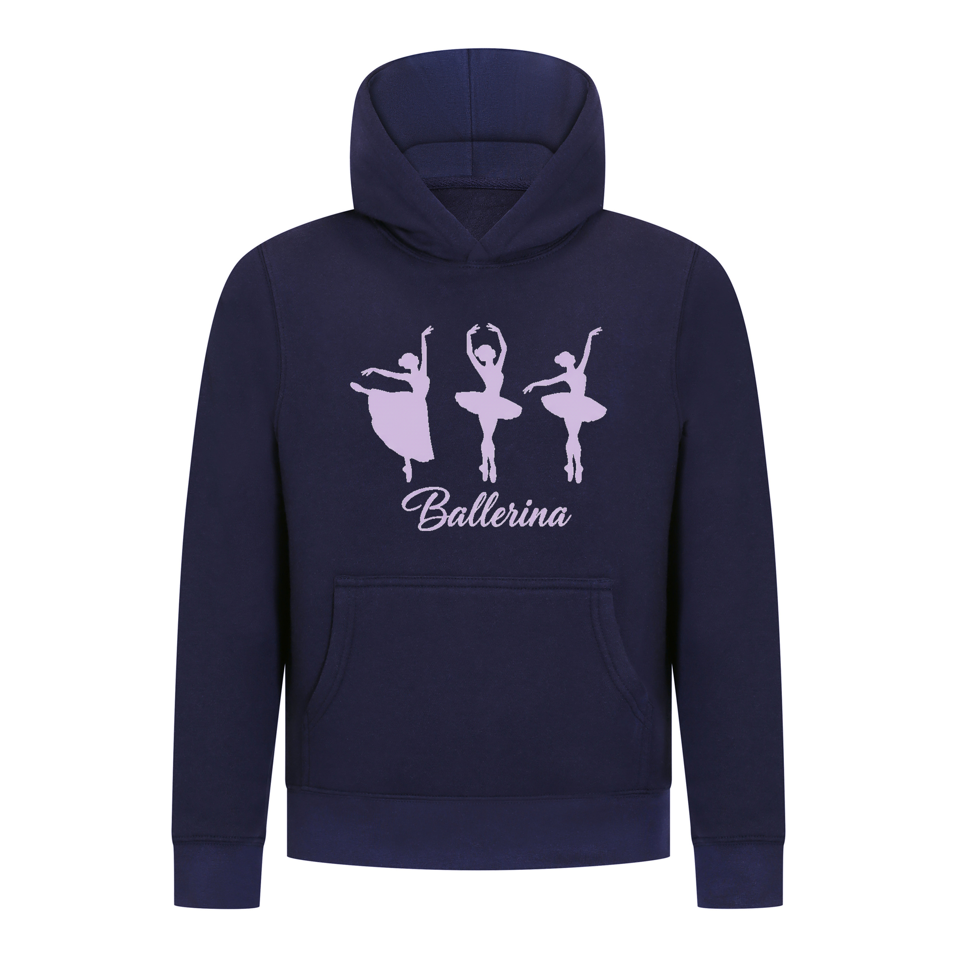The Everyday Kids Ballerina Hoodie features three elegant dancer silhouettes in a soft purple shade with a classic ballet script. This cozy fleece hoodie brings gentle charm to everyday outfits and keeps kids warm from the studio to the playground. Perfect for any child who loves ballet, movement, and dreamy pastel styles.