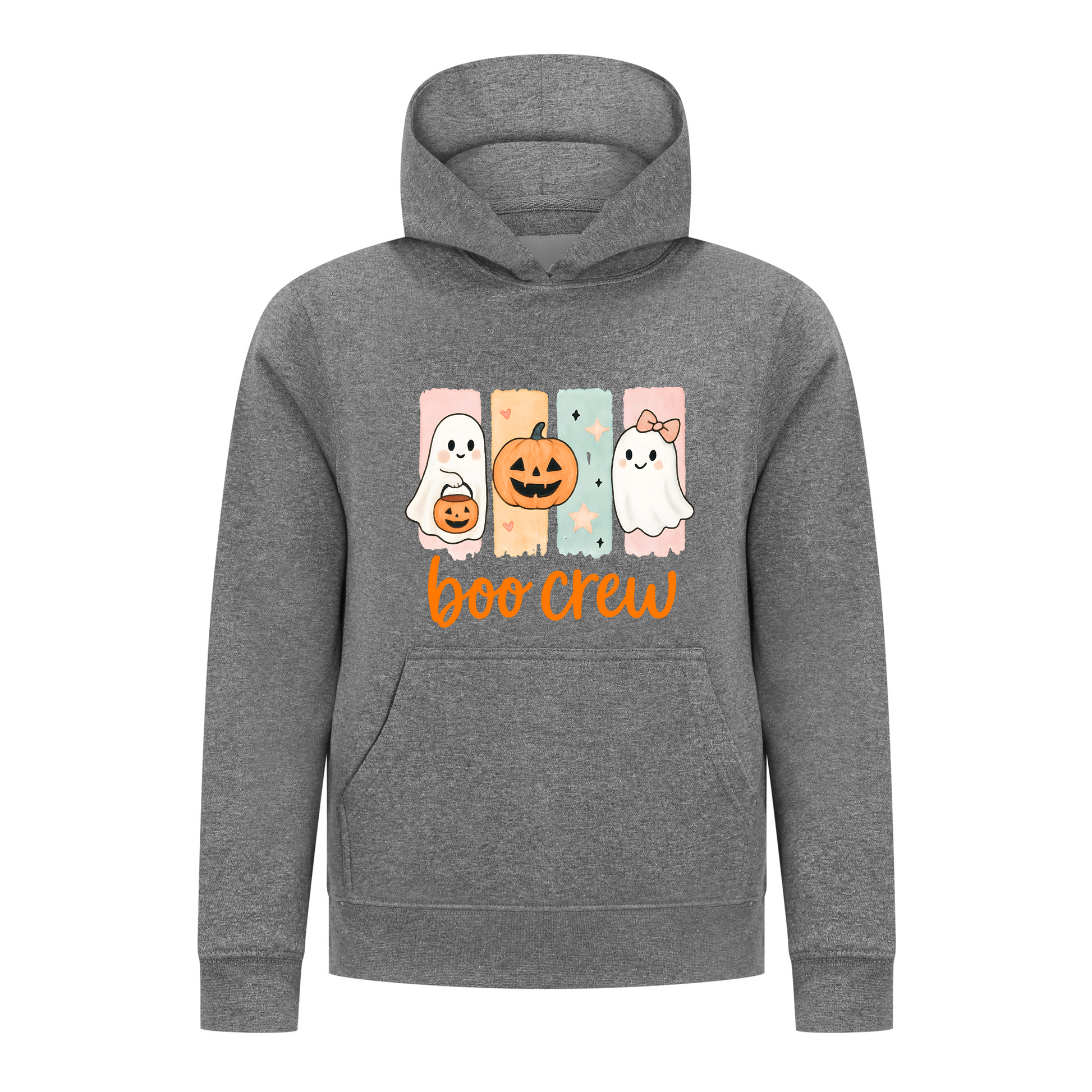 Everyday Kids “Boo Crew” Halloween Pullover Hoodie – Cute Ghosts and Pumpkins – Cozy Fall Sweatshirt for Girls, Charcoal Gray