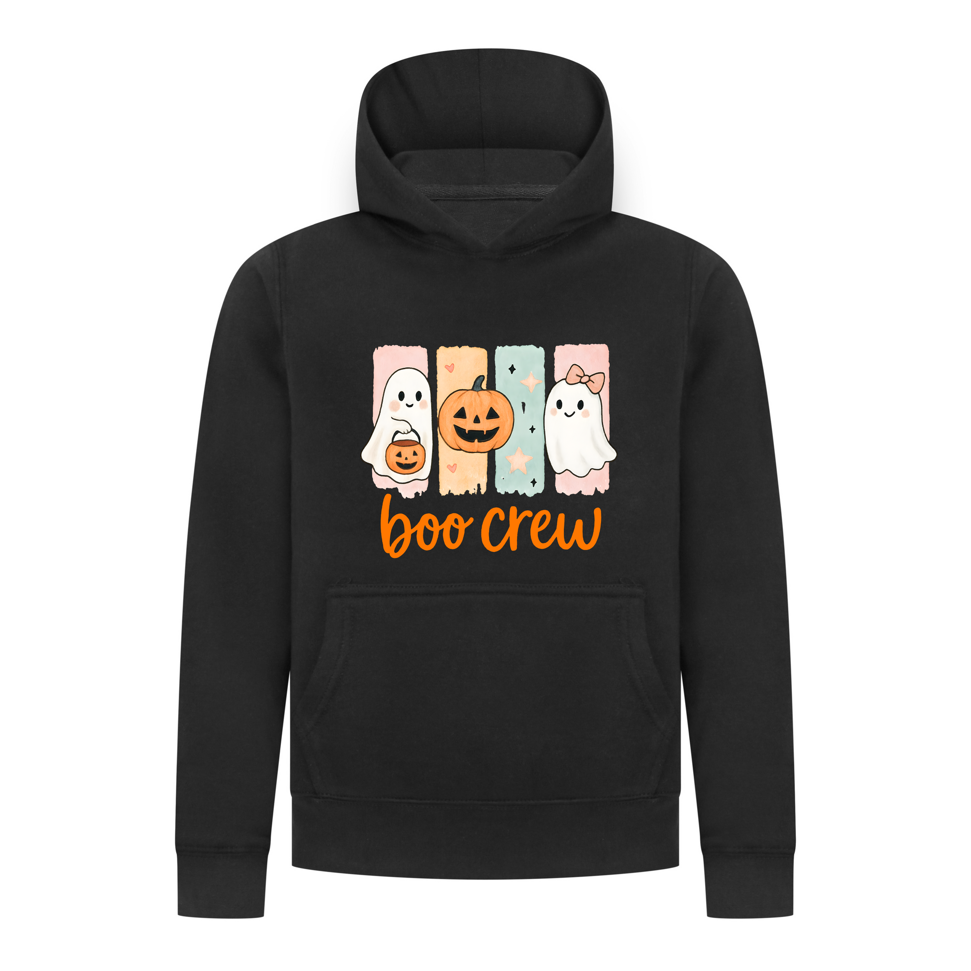 Everyday Kids “Boo Crew” Halloween Pullover Hoodie – Cute Ghosts and Pumpkins – Cozy Fall Sweatshirt for Girls, Black