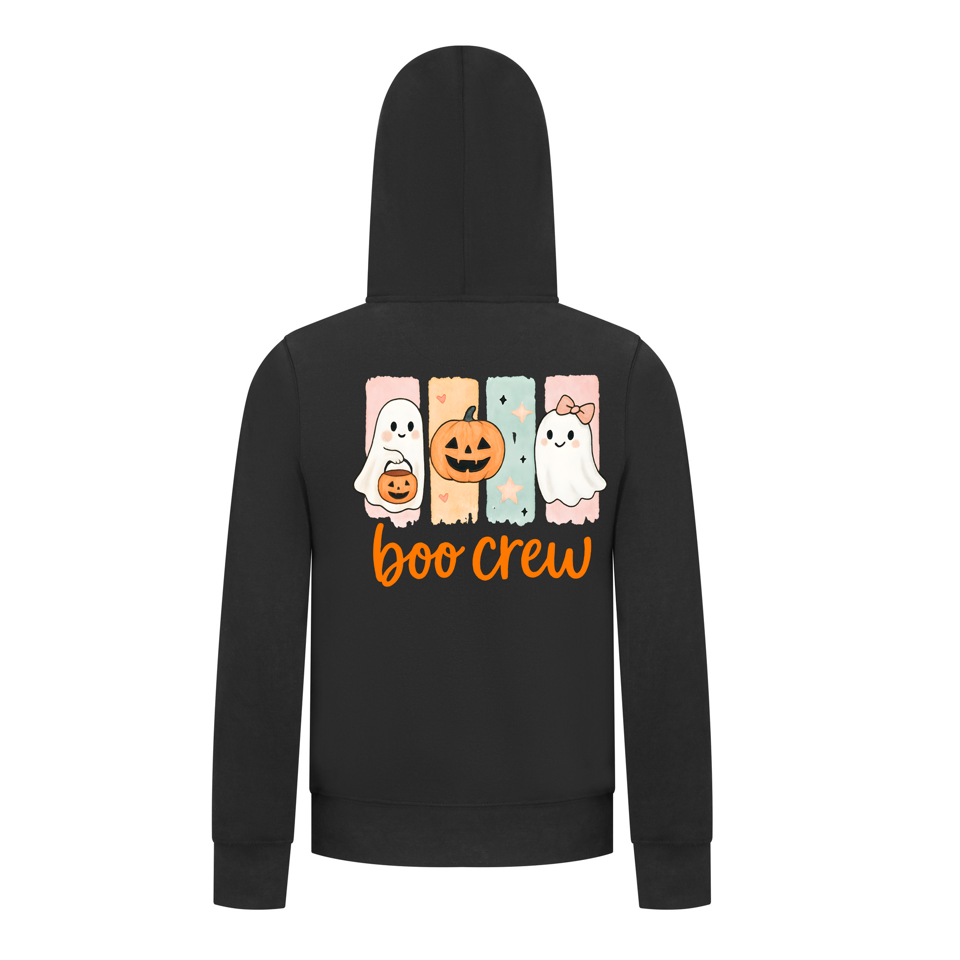 Adorable Boo Crew Design – Smiling ghosts and pumpkins create cheerful Halloween style.
