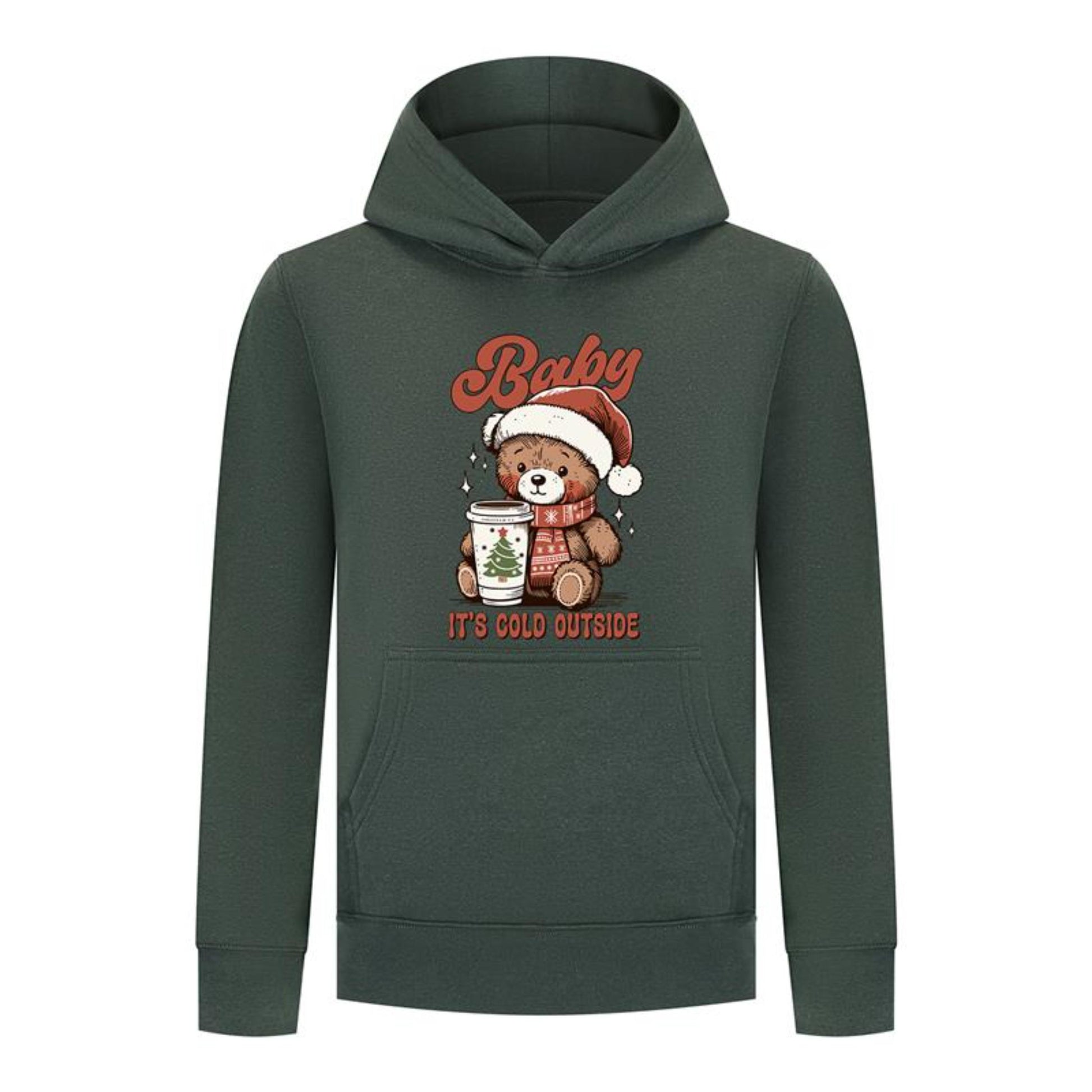 Everyday Kids Christmas Collection Baby It’s Cold Outside Pullover Hoodie – Holiday Sweatshirt - Green