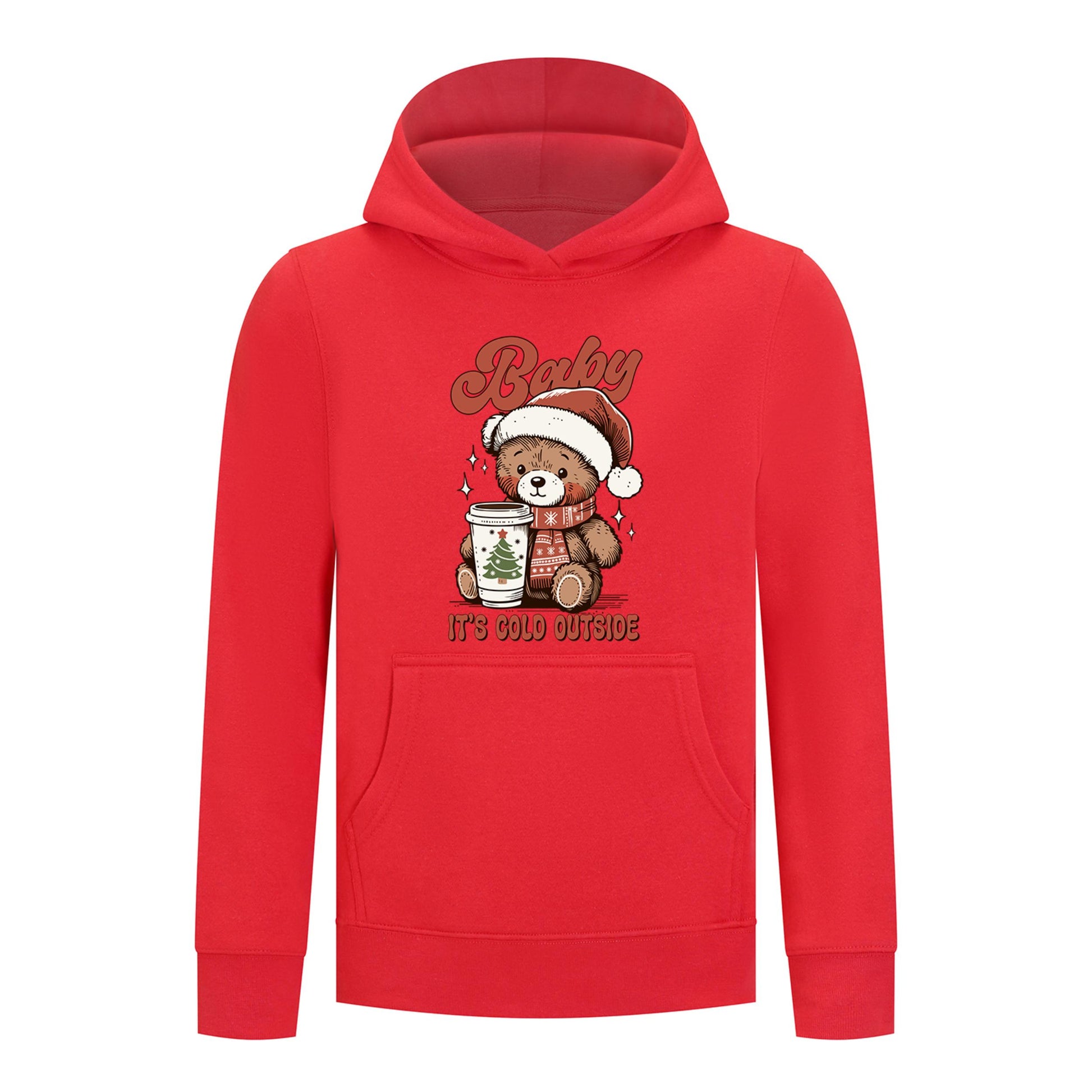 Warm up the holidays with the Everyday Kids Christmas Collection Baby It’s Cold Outside Hoodie! This cozy sweatshirt features a sweet teddy bear in a Santa hat and scarf holding a festive drink—perfect for capturing that warm, winter feeling. Made from soft fleece for ultimate comfort, it’s ideal for school, lounging, or Christmas family fun. Durable, easy to clean, and full of seasonal charm, it’s a must-have hoodie for a cozy holiday season.