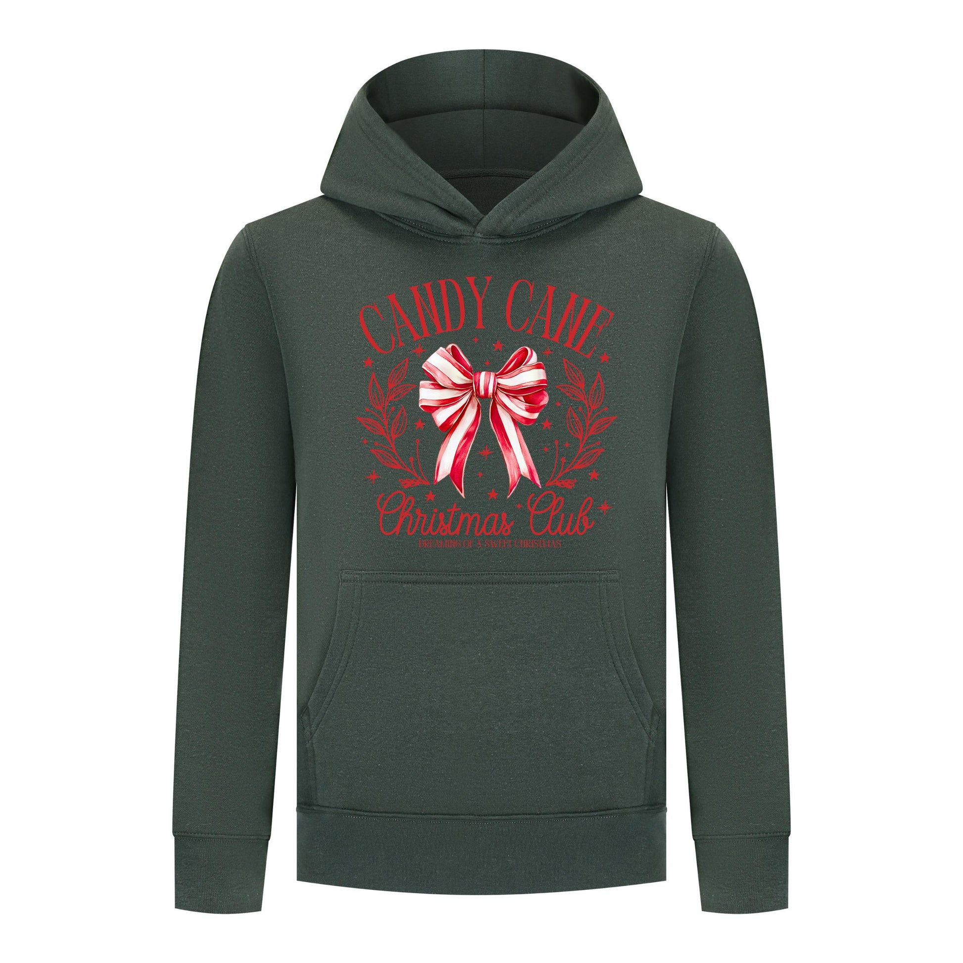 Celebrate the sweetness of the season with the Everyday Kids Christmas Collection Candy Cane Christmas Club Hoodie! Featuring a classic red-and-white candy cane bow surrounded by festive details, this cozy fleece sweatshirt brings cheerful holiday spirit to any outfit. Soft, durable, and easy to wash, it’s perfect for Christmas photos, school, or lounging at home. A cute and comfy way for kids to show off their holiday style all season long.