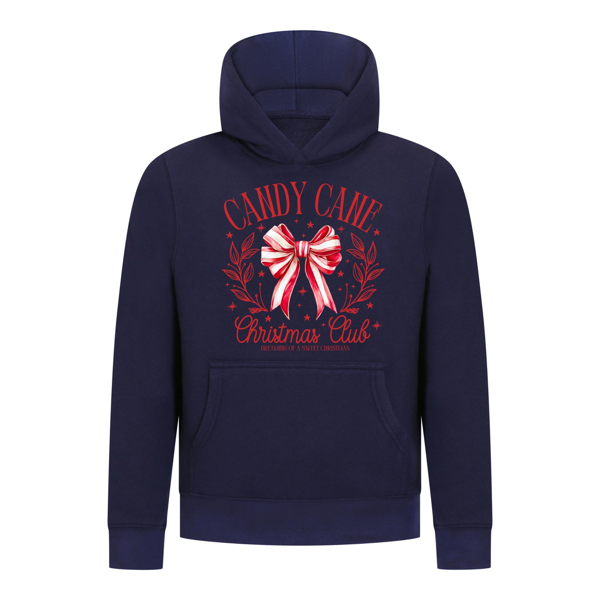 Everyday Kids Christmas Collection Candy Cane Christmas Club Girls Pullover Hoodie – Holiday Sweatshirt - Navy