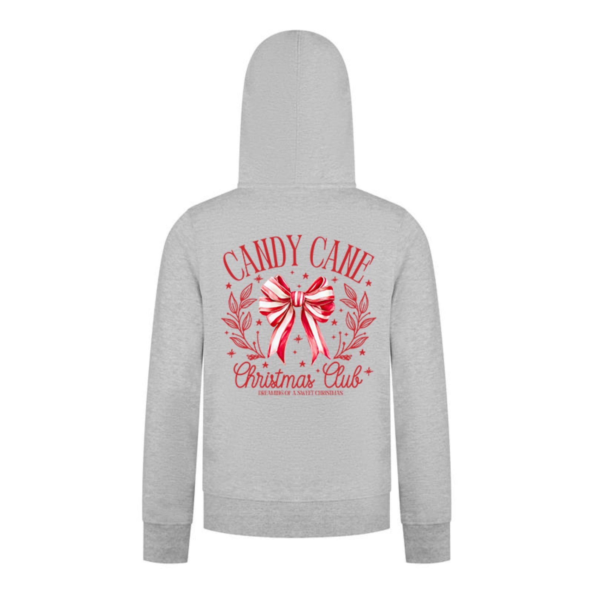 Everyday Kids Christmas Collection Candy Cane Christmas Club Girls Zip Up Hoodie – Holiday Sweatshirt - Heather Gray