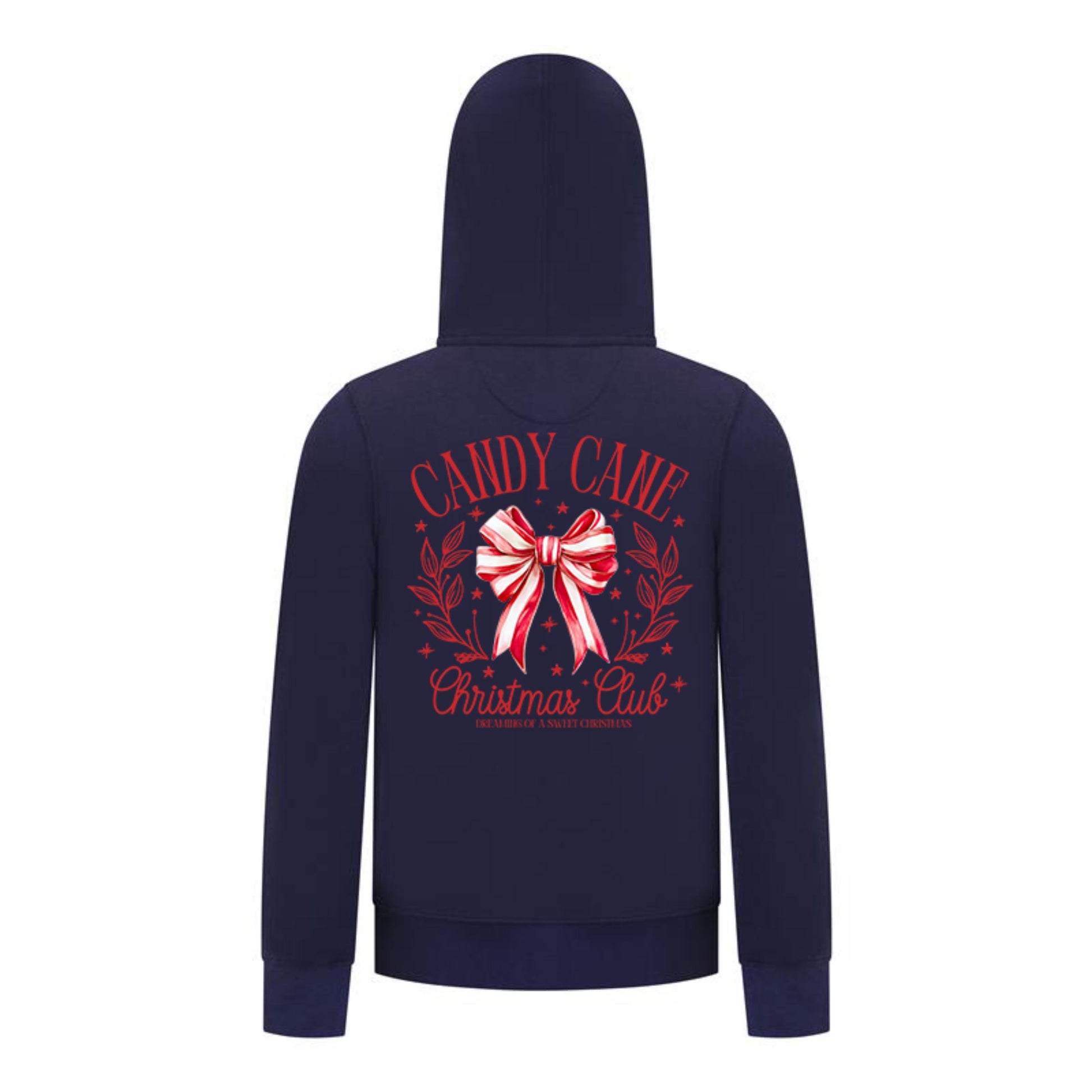 Everyday Kids Christmas Collection Candy Cane Christmas Club Girls Zip Up Hoodie – Holiday Sweatshirt - Navy