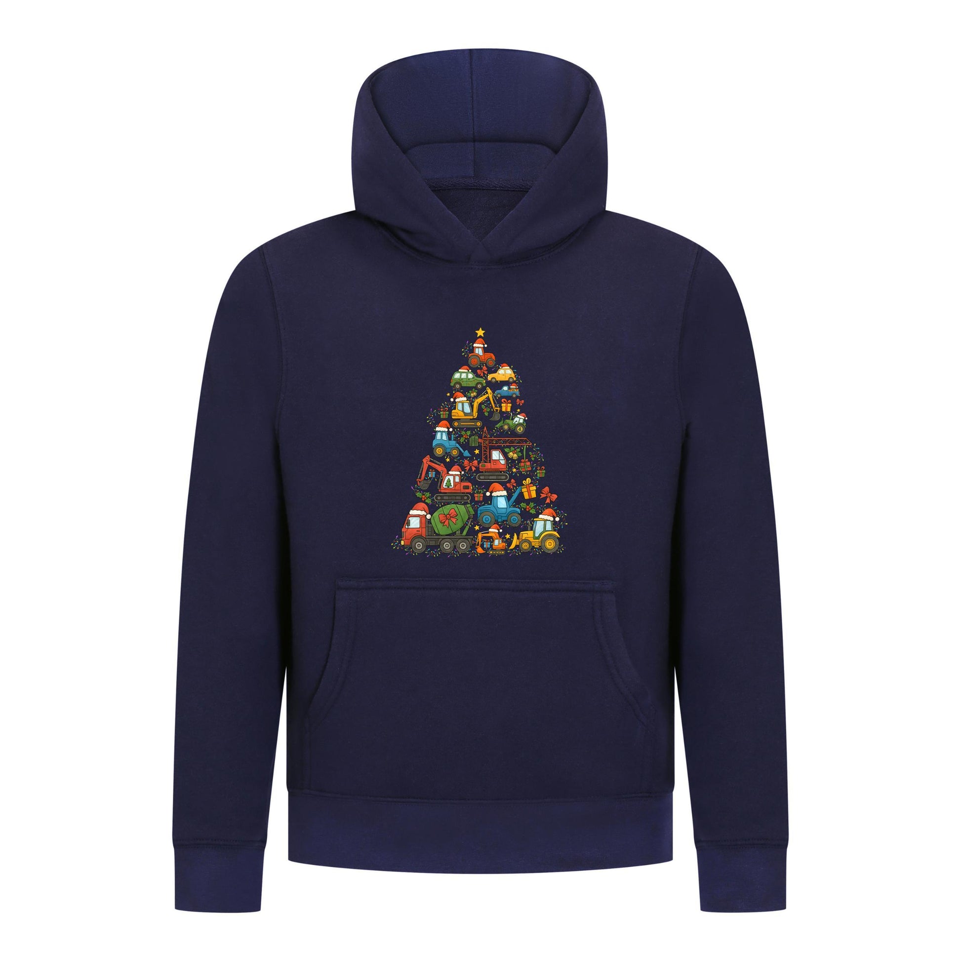 Everyday Kids Christmas Collection Construction Truck Tree Boys Pullover Hoodie – Holiday Sweatshirt - Navy
