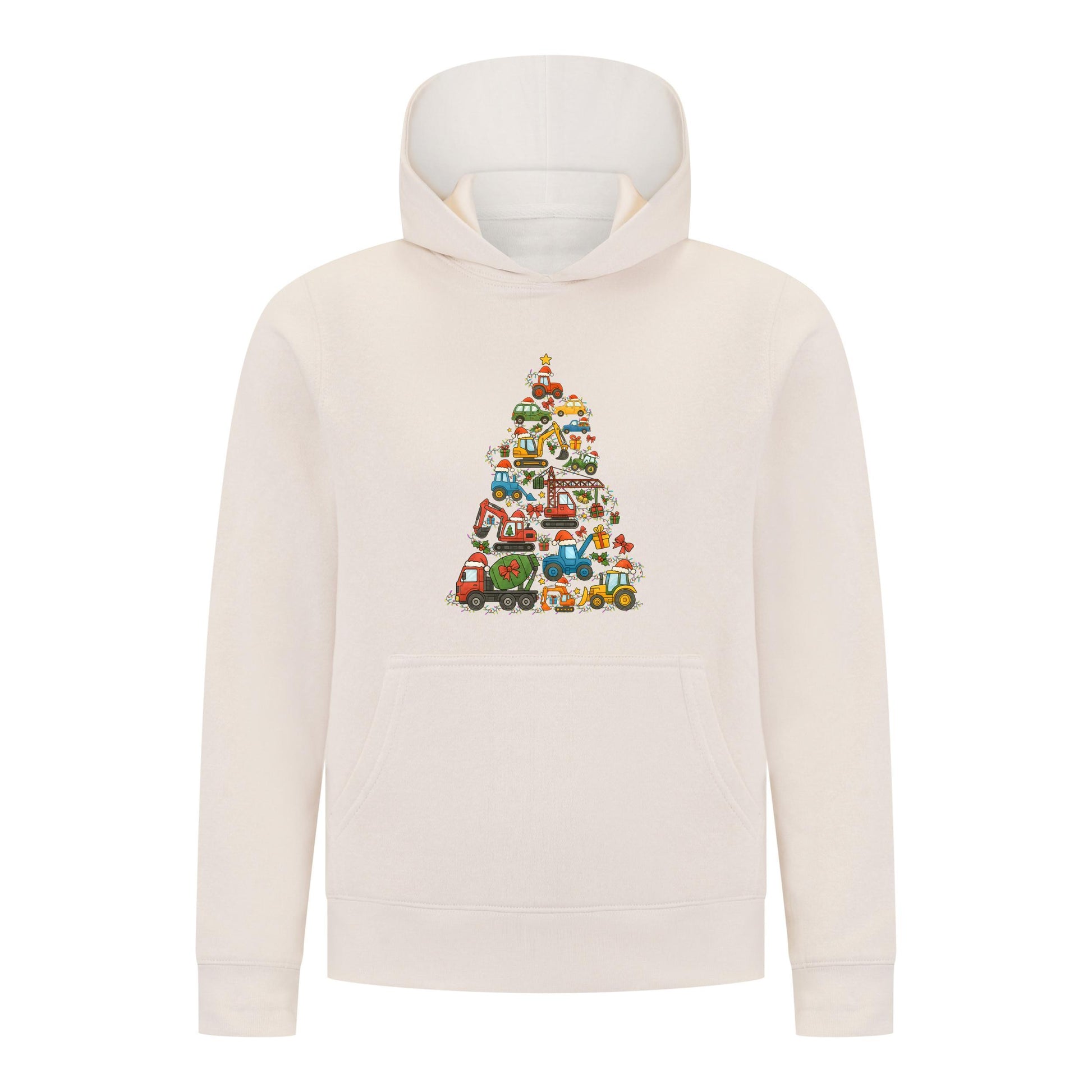 Everyday Kids Christmas Collection Construction Truck Tree Boys Pullover Hoodie – Holiday Sweatshirt - Off White