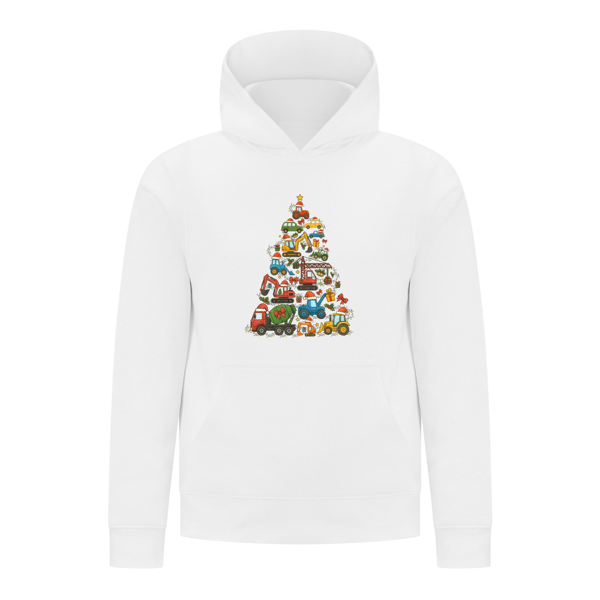 Everyday Kids Christmas Collection Construction Truck Tree Boys Pullover Hoodie – Holiday Sweatshirt - White