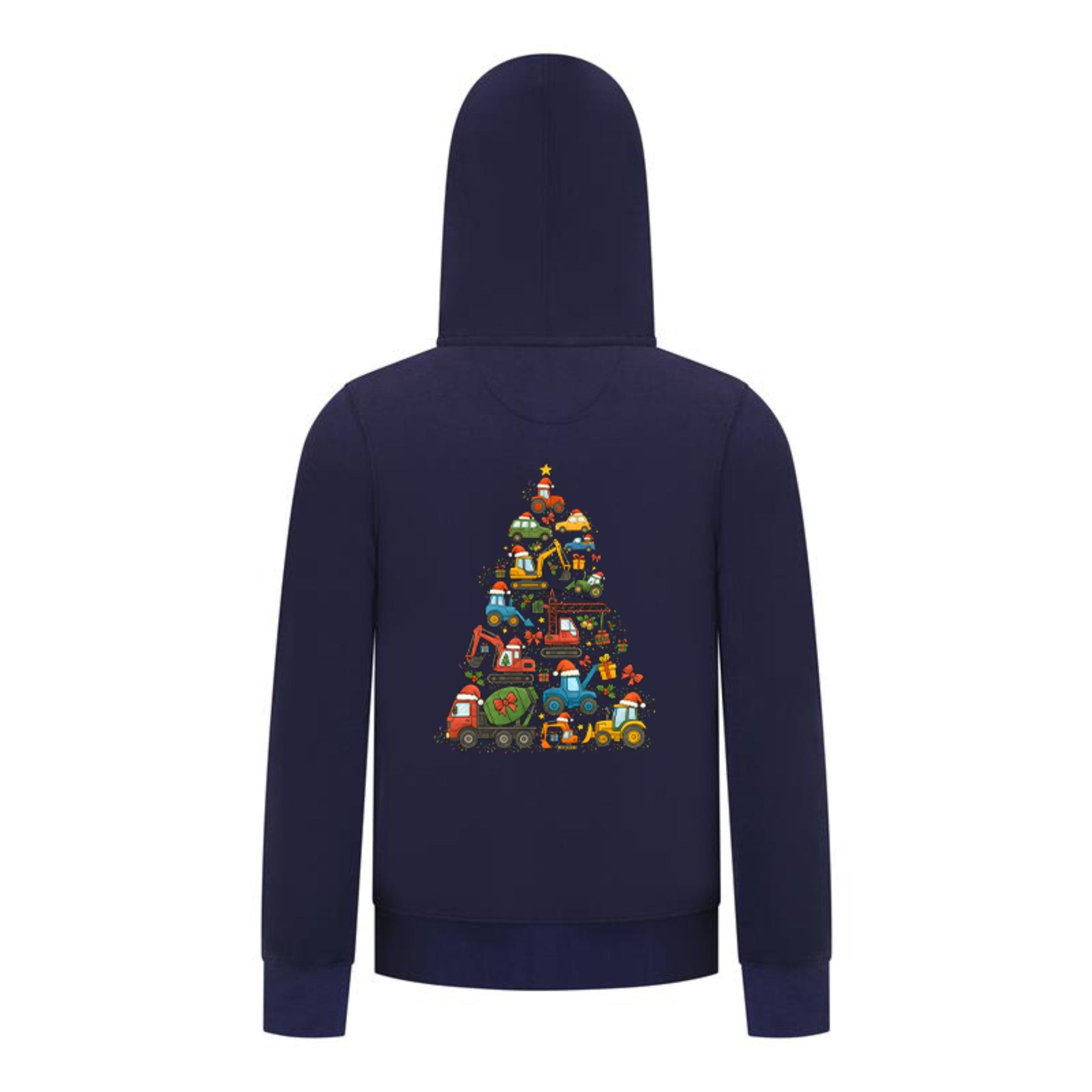 Everyday Kids Christmas Collection Construction Truck Tree Boys Zip up Hoodie – Holiday Sweatshirt - Navy