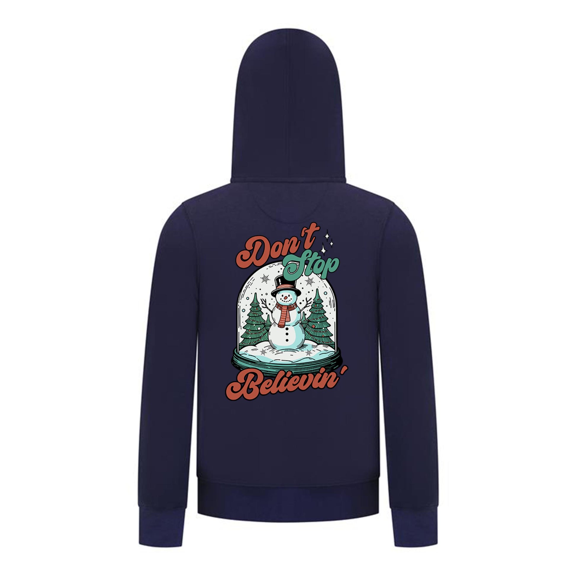 Everyday Kids Christmas Collection Don’t Stop Believin’ Zip Up Hoodie – Holiday Snowman Sweatshirt