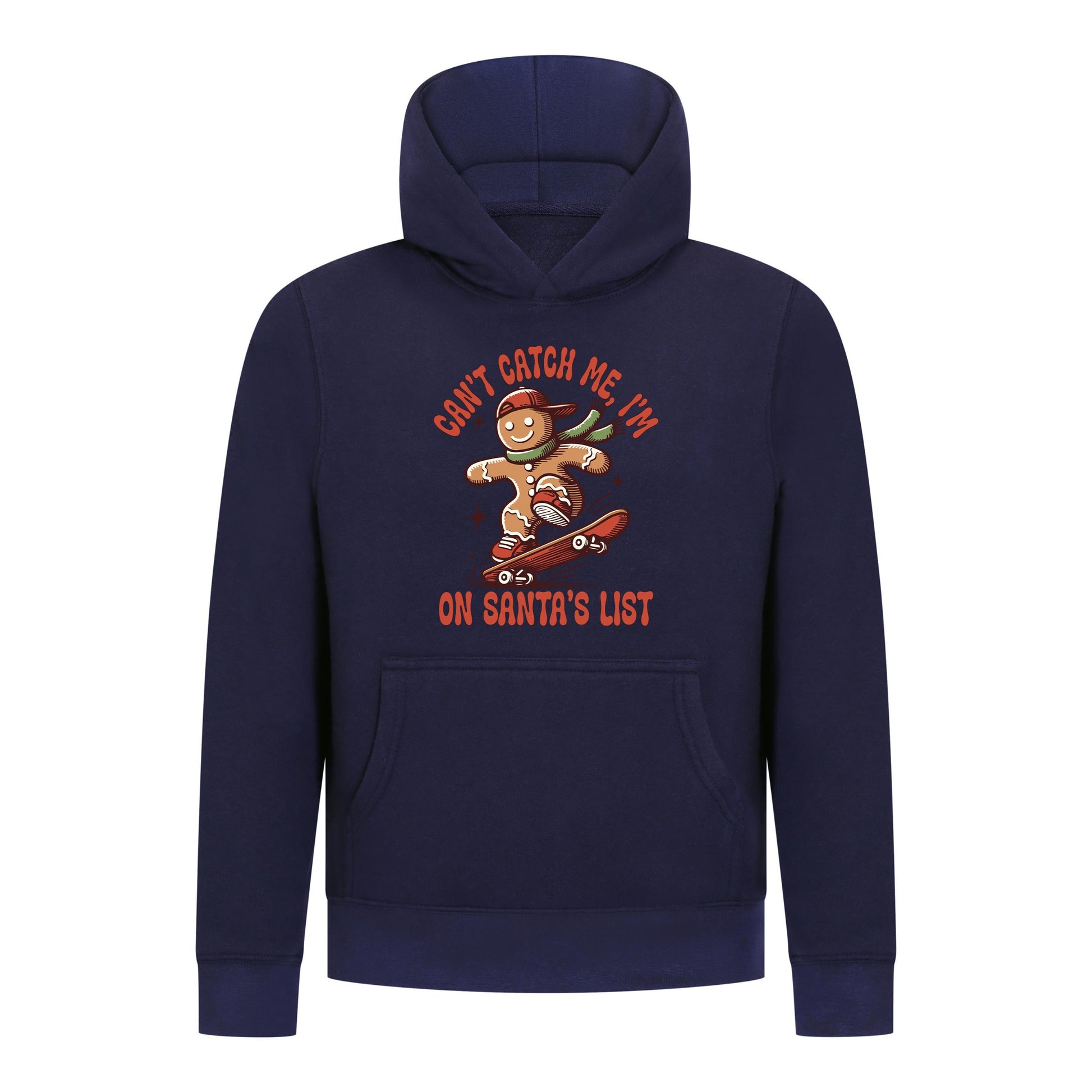 Add a playful twist to holiday style with the Everyday Kids Christmas Collection Gingerbread Skateboard Hoodie! Featuring a sporty gingerbread man skating under the phrase “Can’t Catch Me, I’m on Santa’s List,” this festive design brings energy and laughter to every occasion. Made with cozy, durable fleece, it’s perfect for chilly days, school fun, or Christmas photos. Comfortable, easy to wash, and full of attitude—this hoodie is a sweet pick for the season.