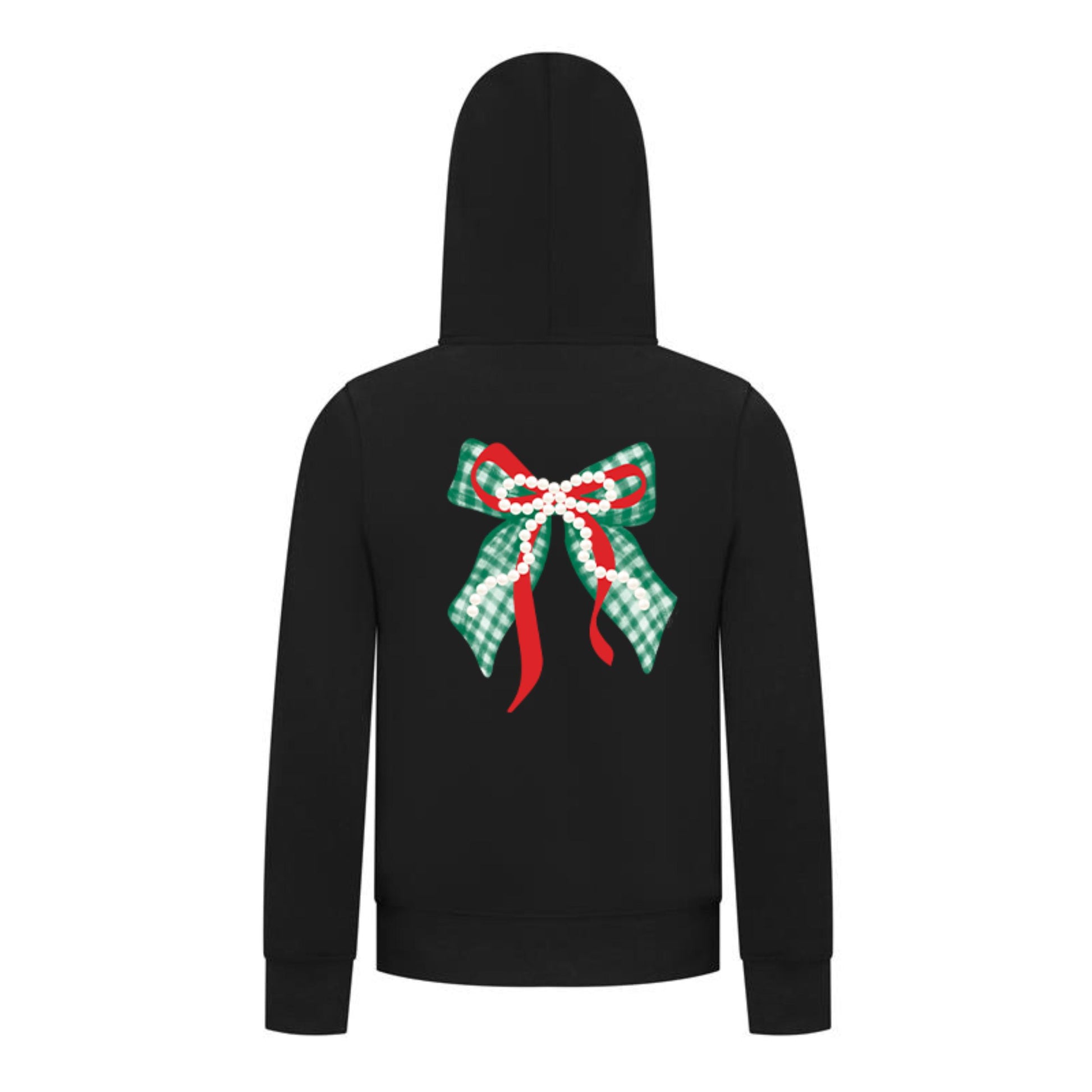 Everyday Kids Christmas Collection Green Gingham Pearl Bow Girls Zip Up Hoodie – Holiday Sweatshirt - Black