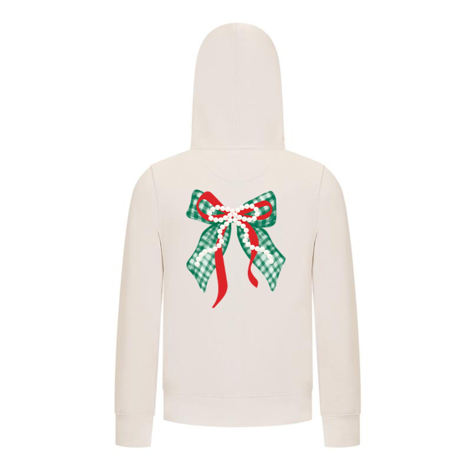 Everyday Kids Christmas Collection Green Gingham Pearl Bow Girls Zip Up Hoodie – Holiday Sweatshirt - Off White
