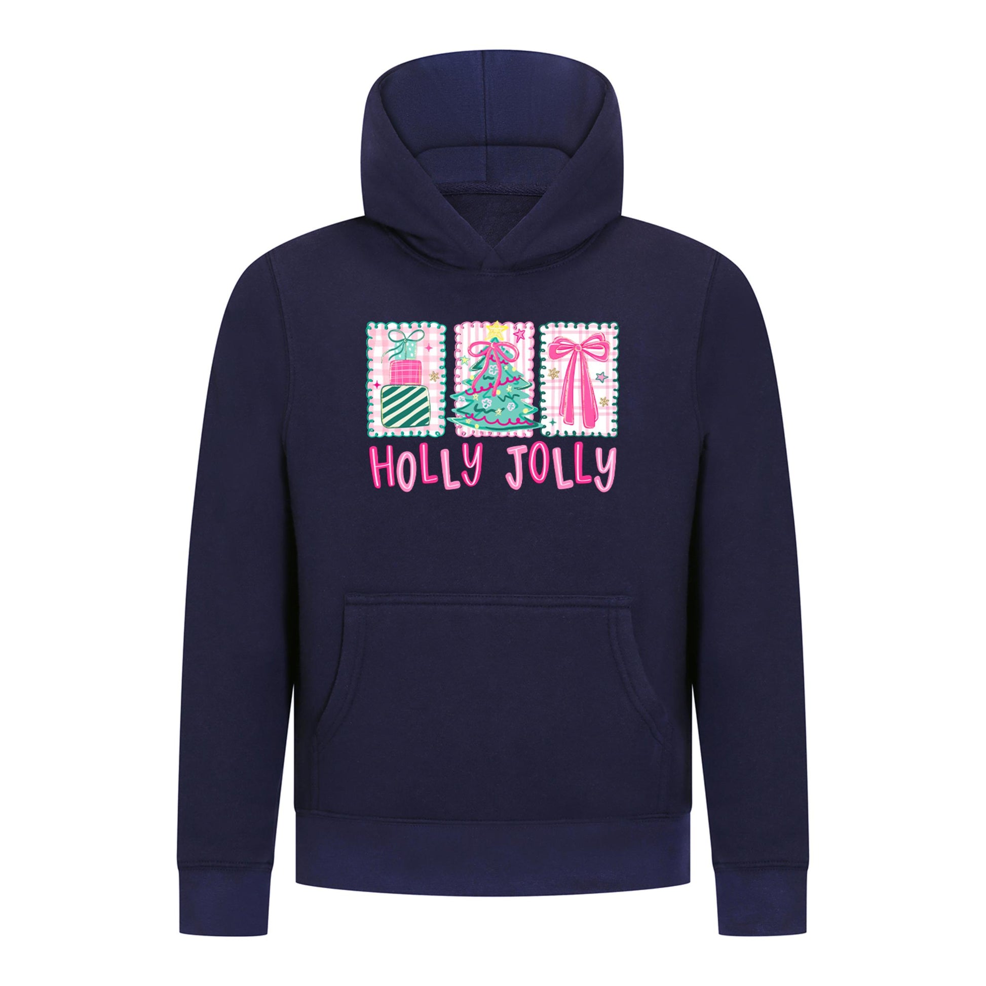 Spread cheerful holiday vibes with the Everyday Kids Christmas Collection Holly Jolly Hoodie! This fun and colorful sweatshirt features pastel pink plaid backgrounds, wrapped presents, bows, and a festive Christmas tree with a “Holly Jolly” message. Soft, cozy, and made for everyday wear, it’s perfect for school, parties, or lounging by the tree. A playful and stylish way for kids to celebrate the most wonderful time of the year.