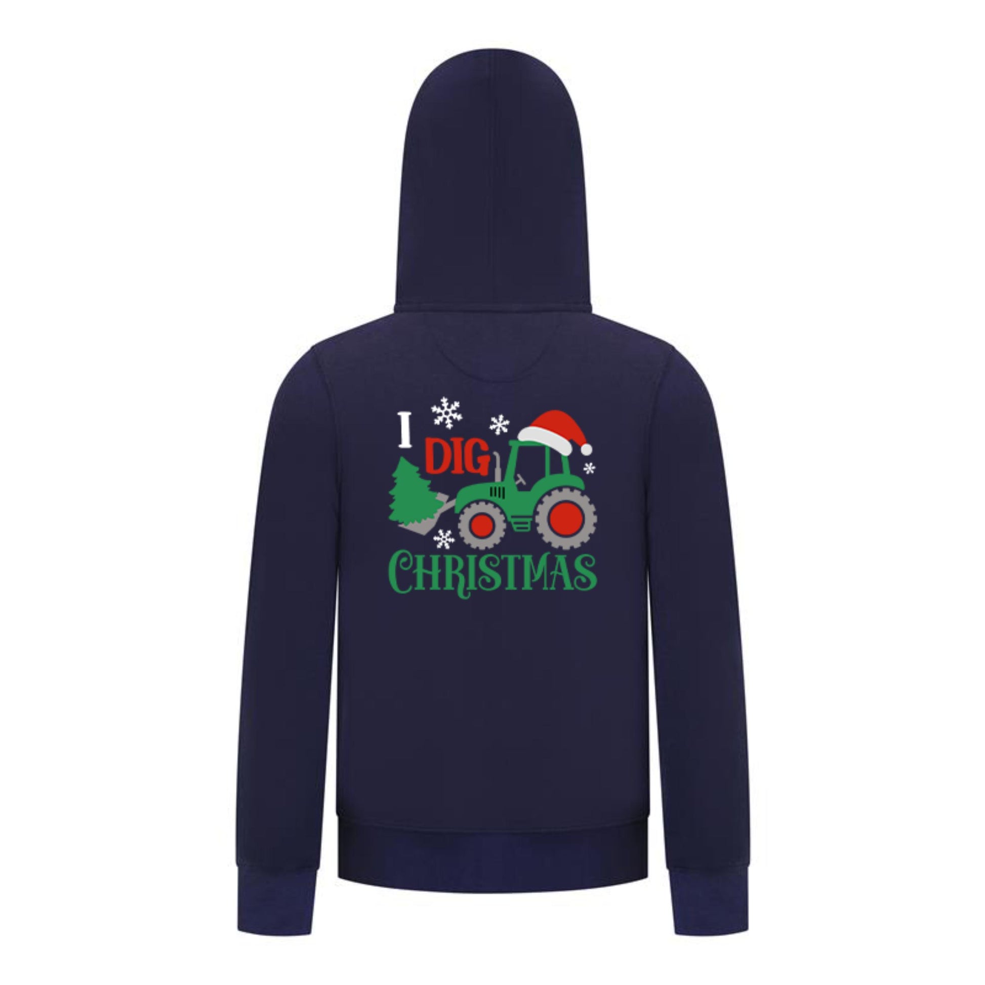 Everyday Kids Christmas Collection I Dig Christmas Zip Up Hoodies – Holiday Tractor Sweatshirt - Navy