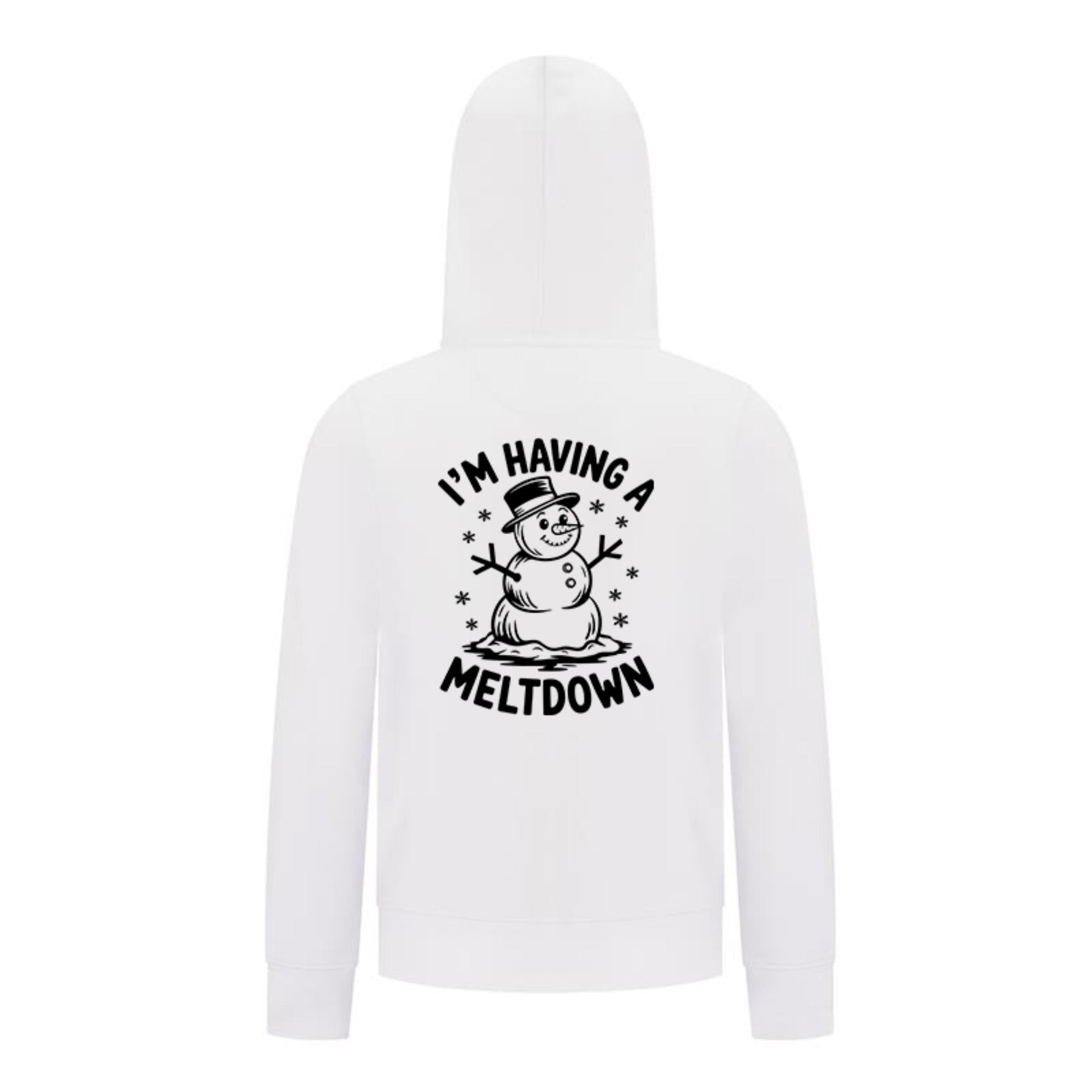 Everyday Kids Christmas Collection I’m Having a Meltdown Zip Up Hoodie – Funny Snowman Holiday Sweatshirt - White