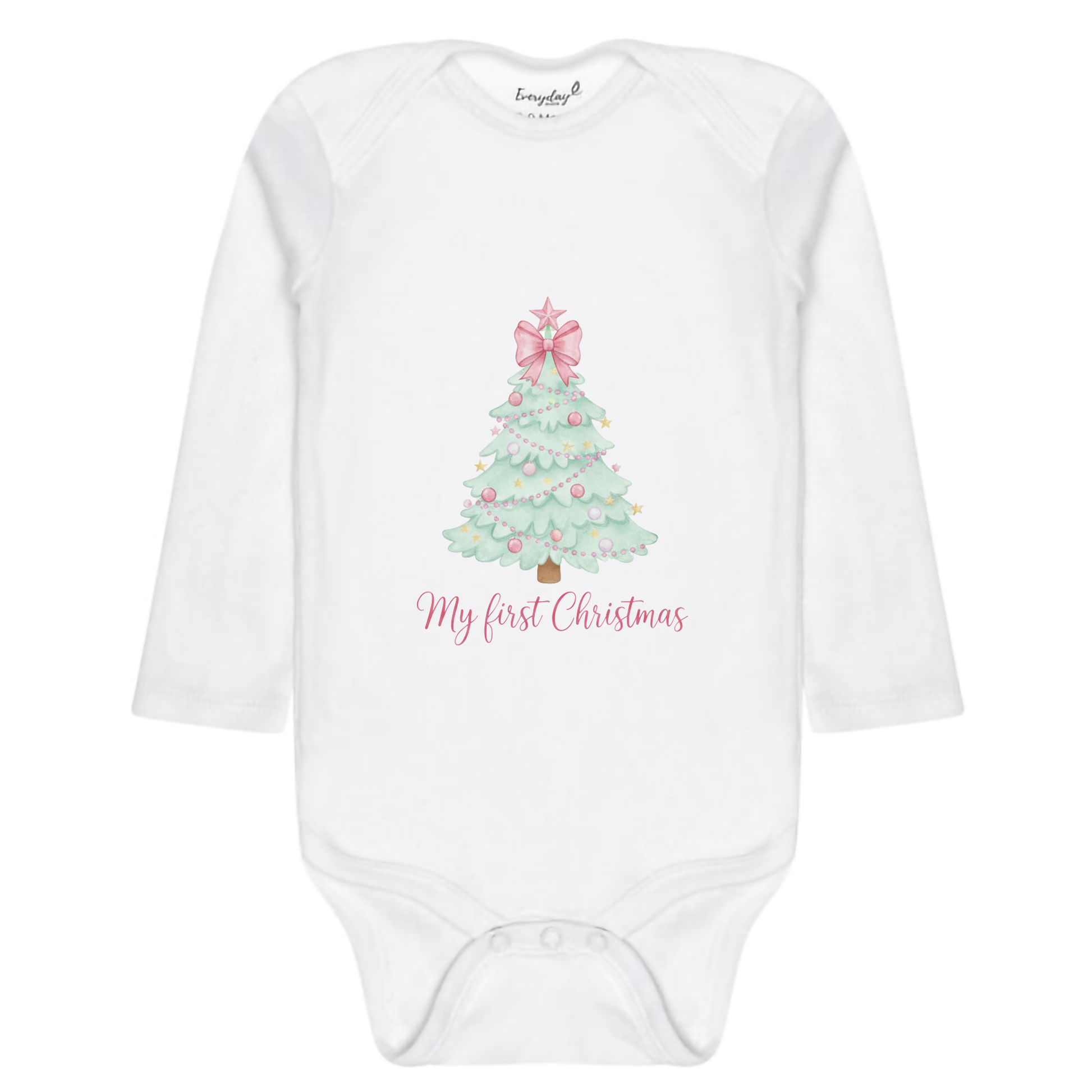 Everyday Kids Christmas Collection My First Christmas Pastel Tree Baby Onesie – Graphic Bodysuit