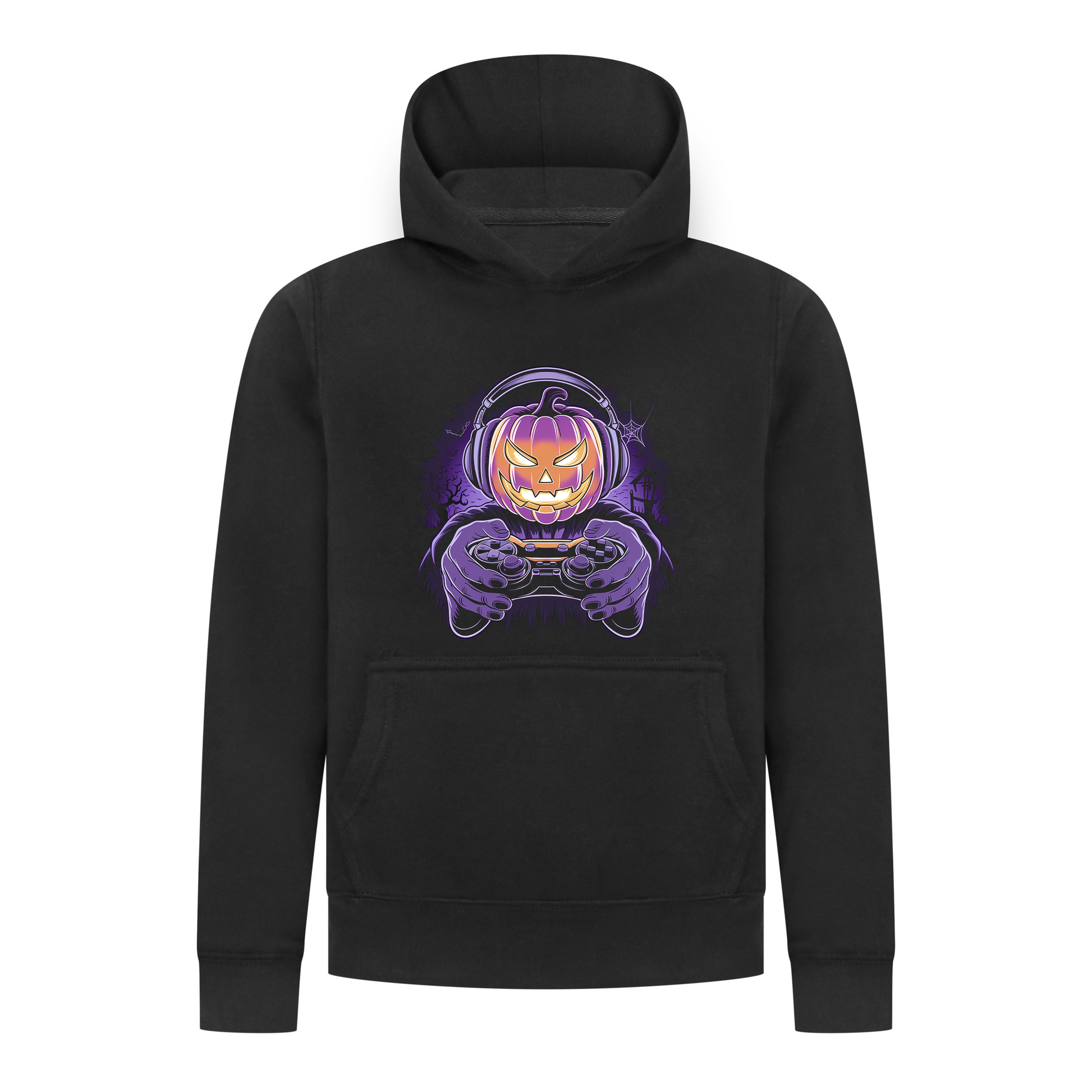 Everyday Kids Halloween Pullover Hoodie – Gamer Pumpkin with Headphones and Controller – Cozy Fall Sweatshirt for Boys, Black