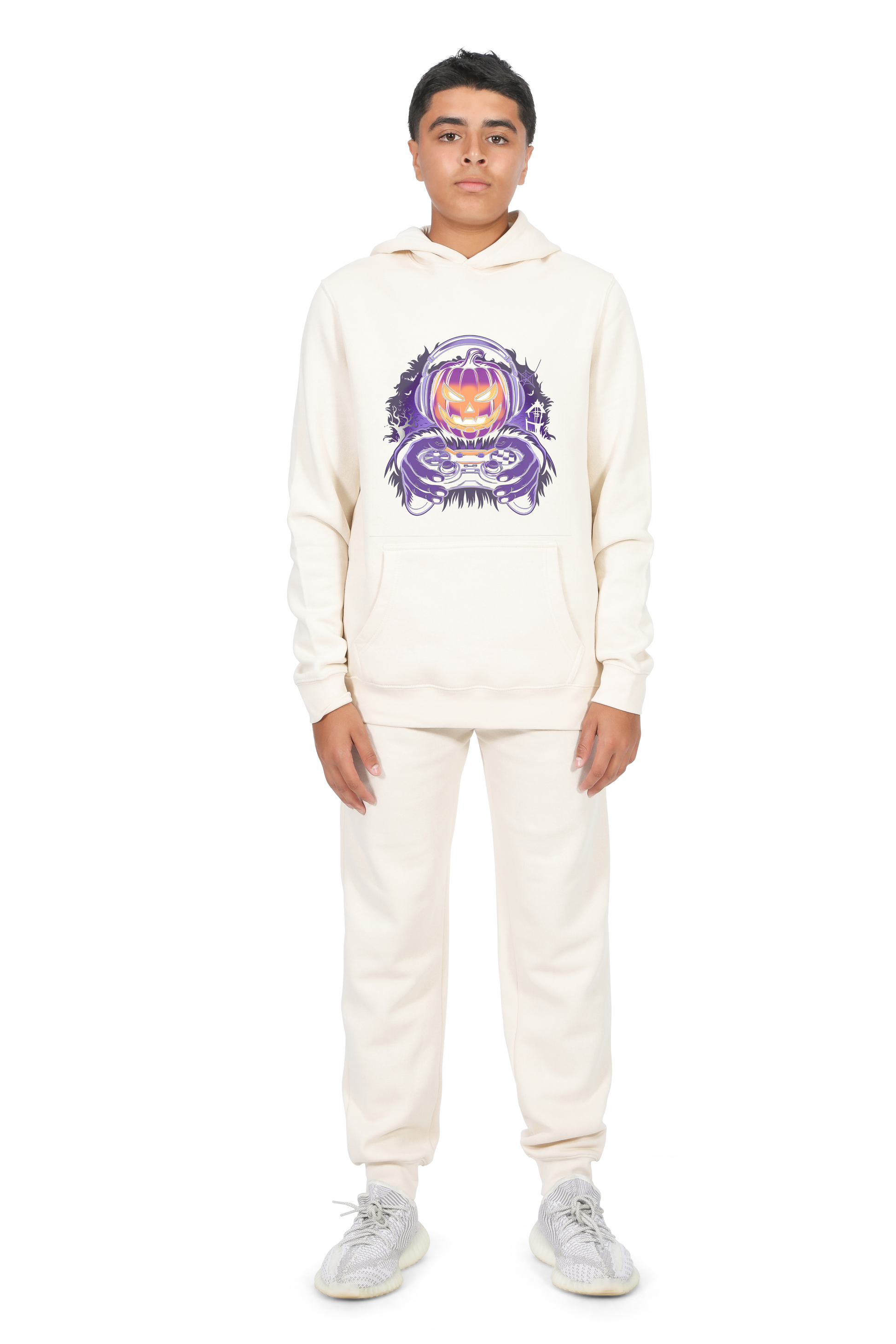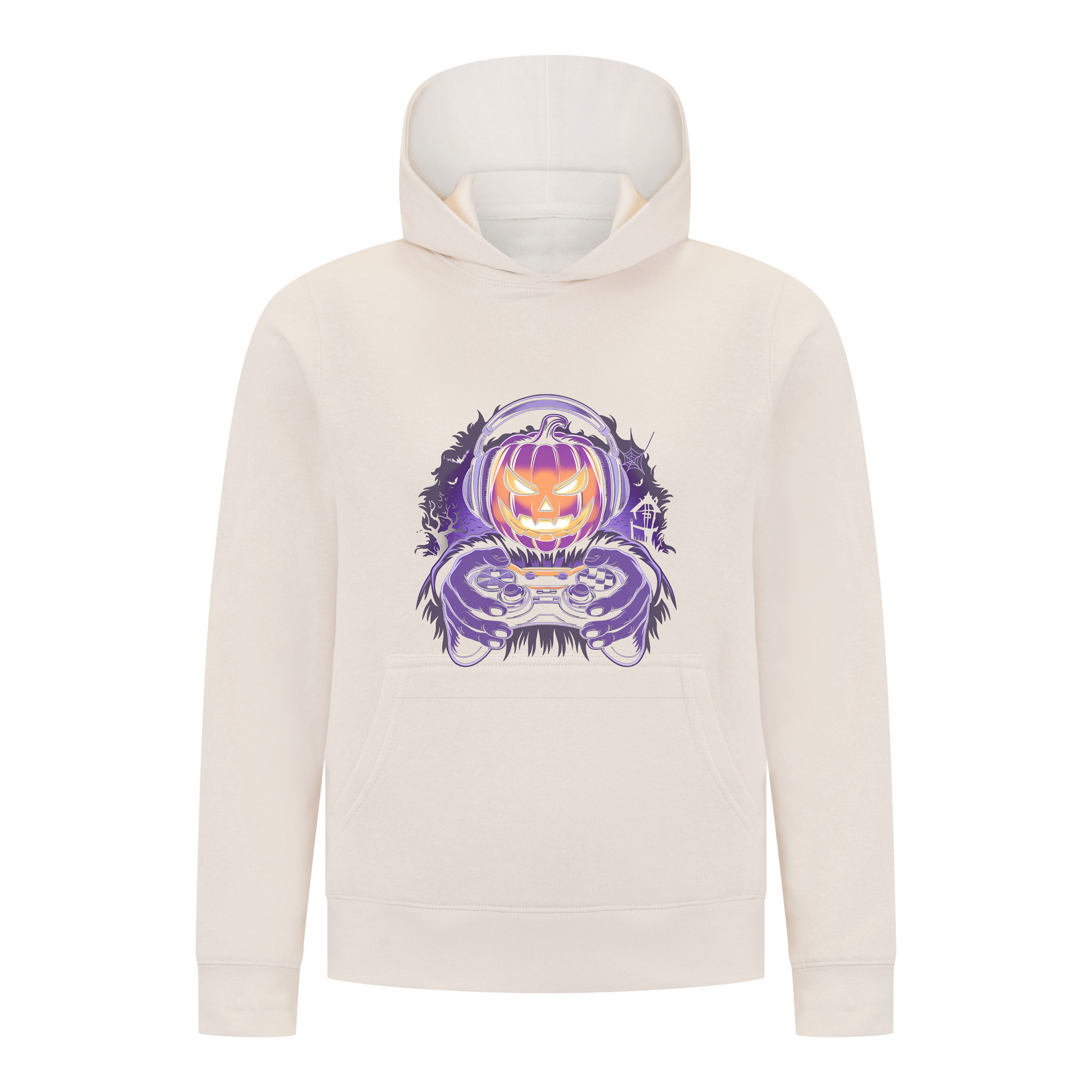 Everyday Kids Halloween Pullover Hoodie – Gamer Pumpkin with Headphones and Controller – Cozy Fall Sweatshirt for Boys, Off-White