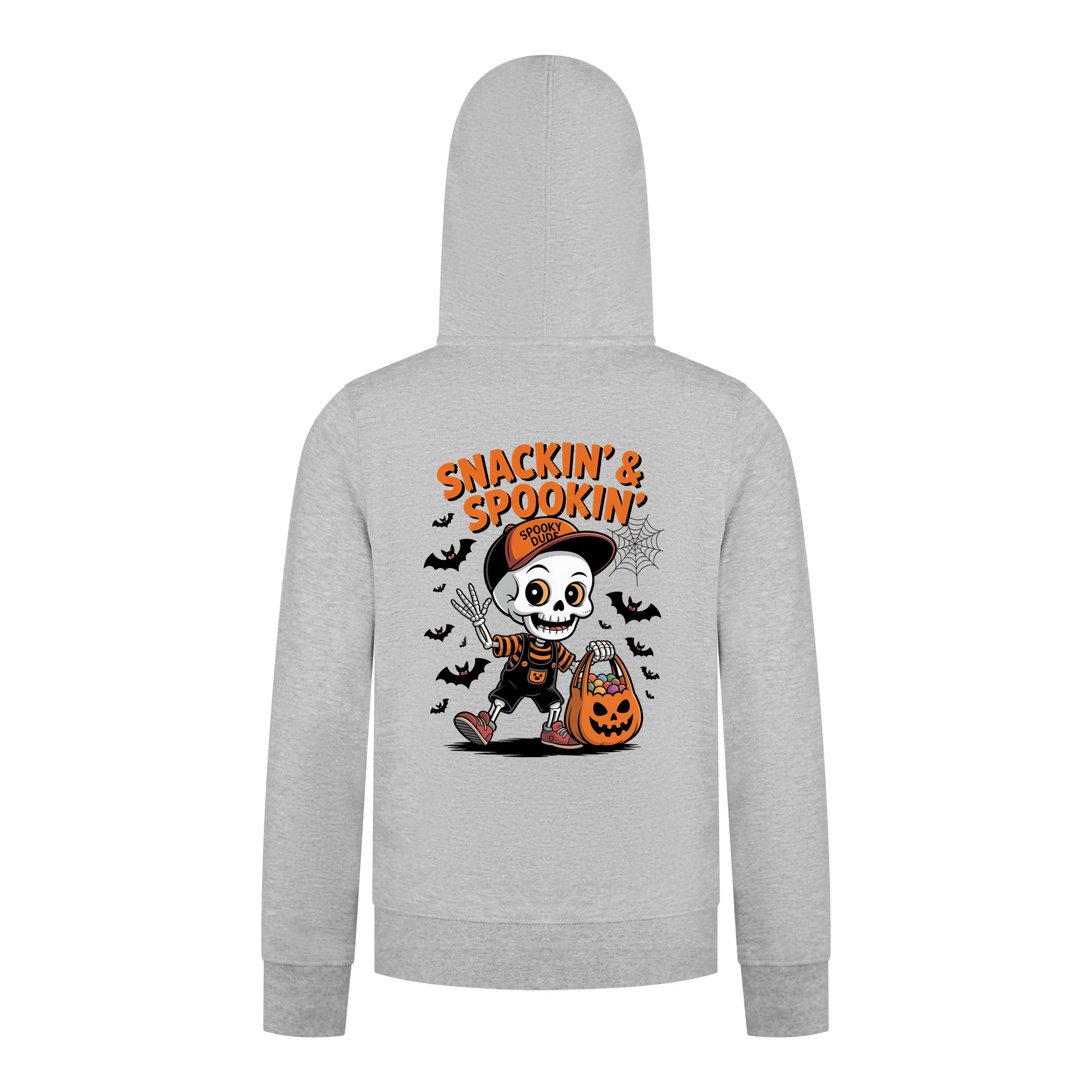 Everyday Kids “Snackin’ & Spookin’” Zip Up Halloween Hoodie – Skeleton Trick-or-Treater with Candy Bag – Cozy Fall Sweatshirt for Boys, Heather Gray