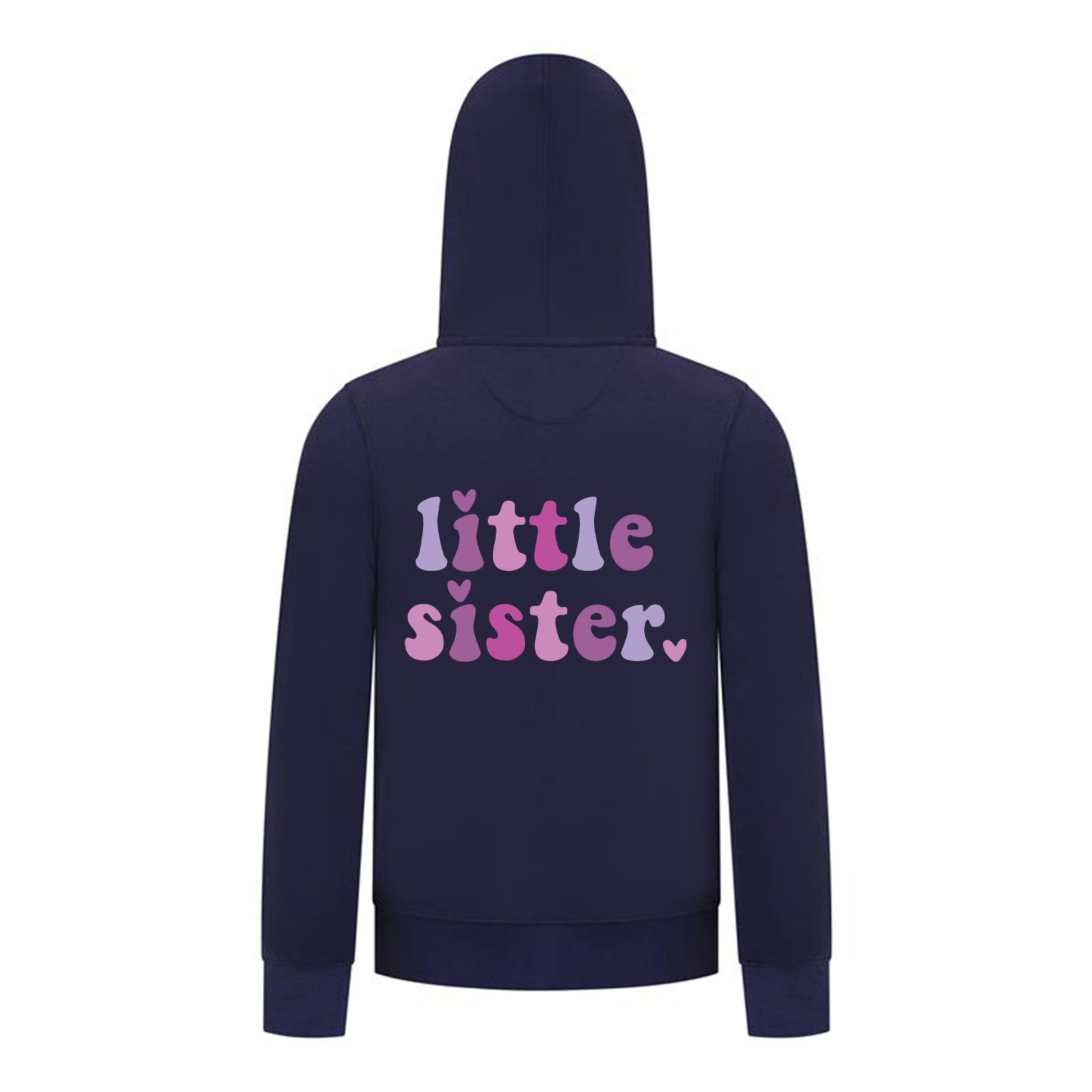 Sweet “Little Sister” design with soft pastel lettering and hearts