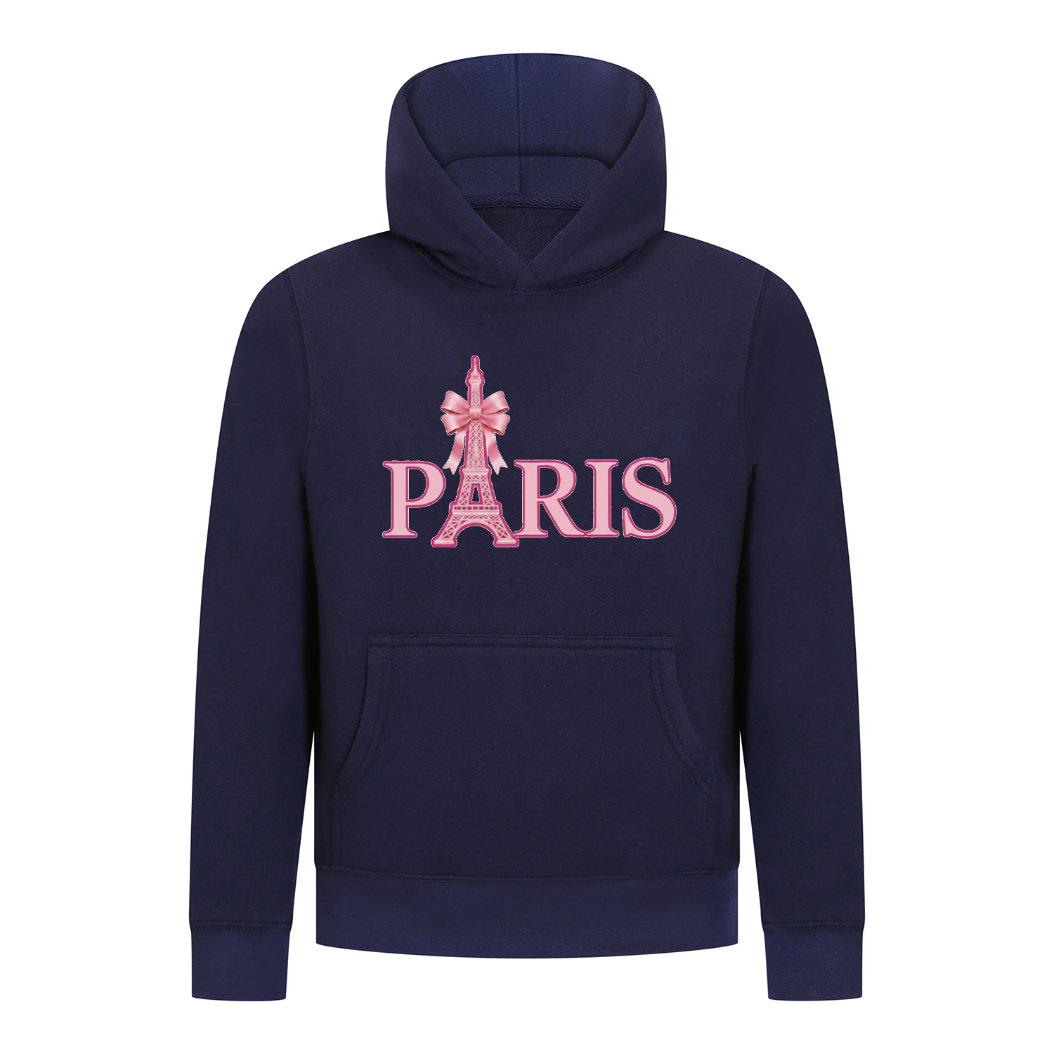 The Everyday Kids Paris Bow Hoodie brings a sweet Parisian touch with a pink Eiffel Tower and matching bow graphic. Made from cozy fleece and designed for everyday comfort, this hoodie adds a stylish, city-inspired look that’s perfect for girls who love travel, fashion, and soft pastel designs.