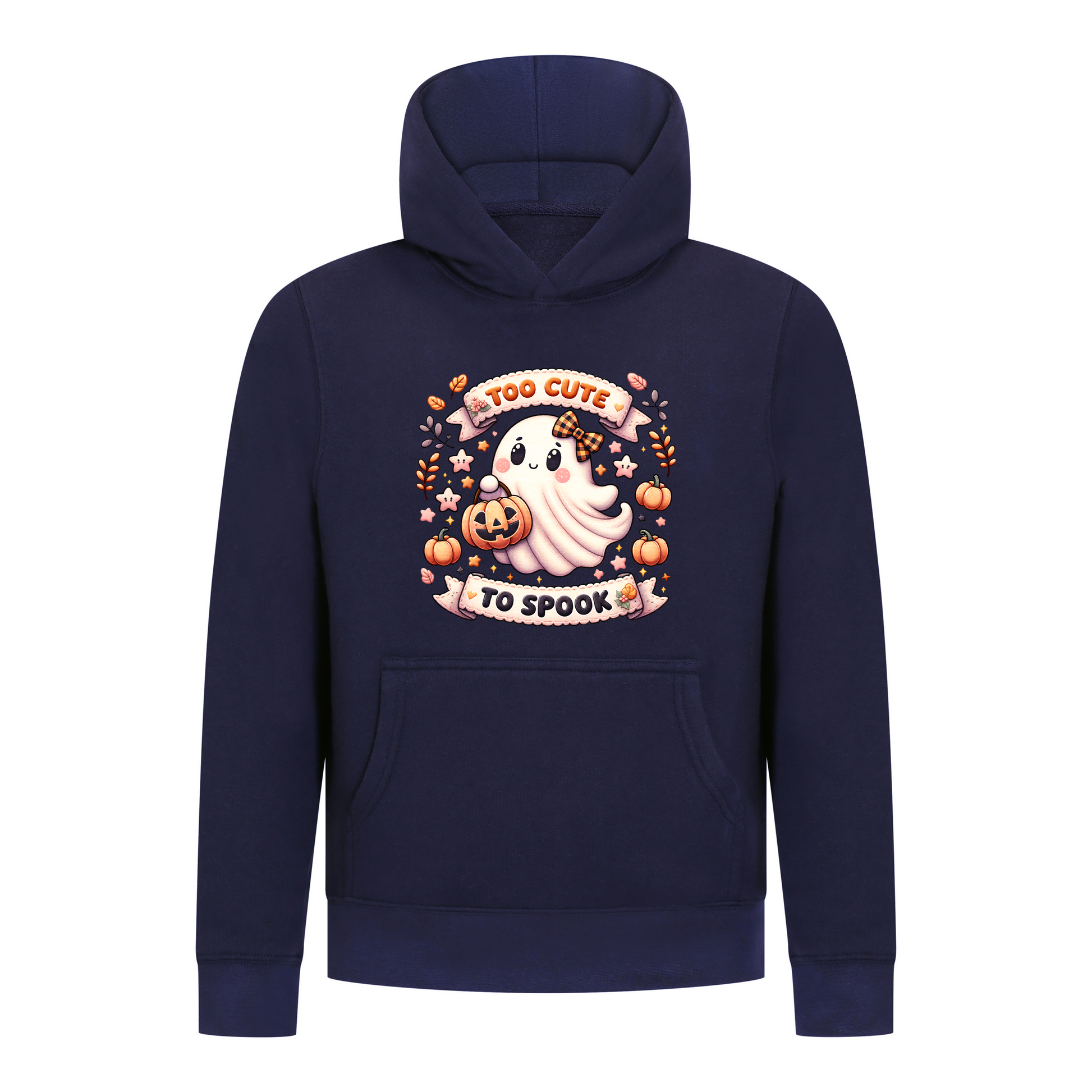 Everyday Kids “Too Cute To Spook” Halloween Pullover Hoodie – Adorable Ghost with Pumpkin Lantern – Cozy Fall Sweatshirt for Girls, Navy