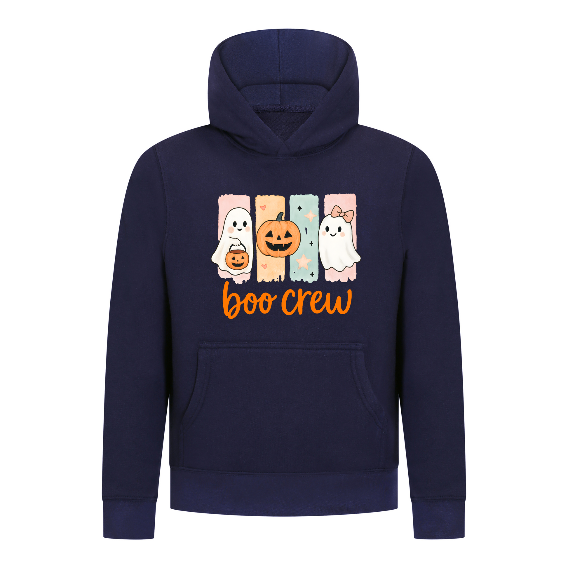 Adorable Boo Crew Design – Smiling ghosts and pumpkins create cheerful Halloween style.