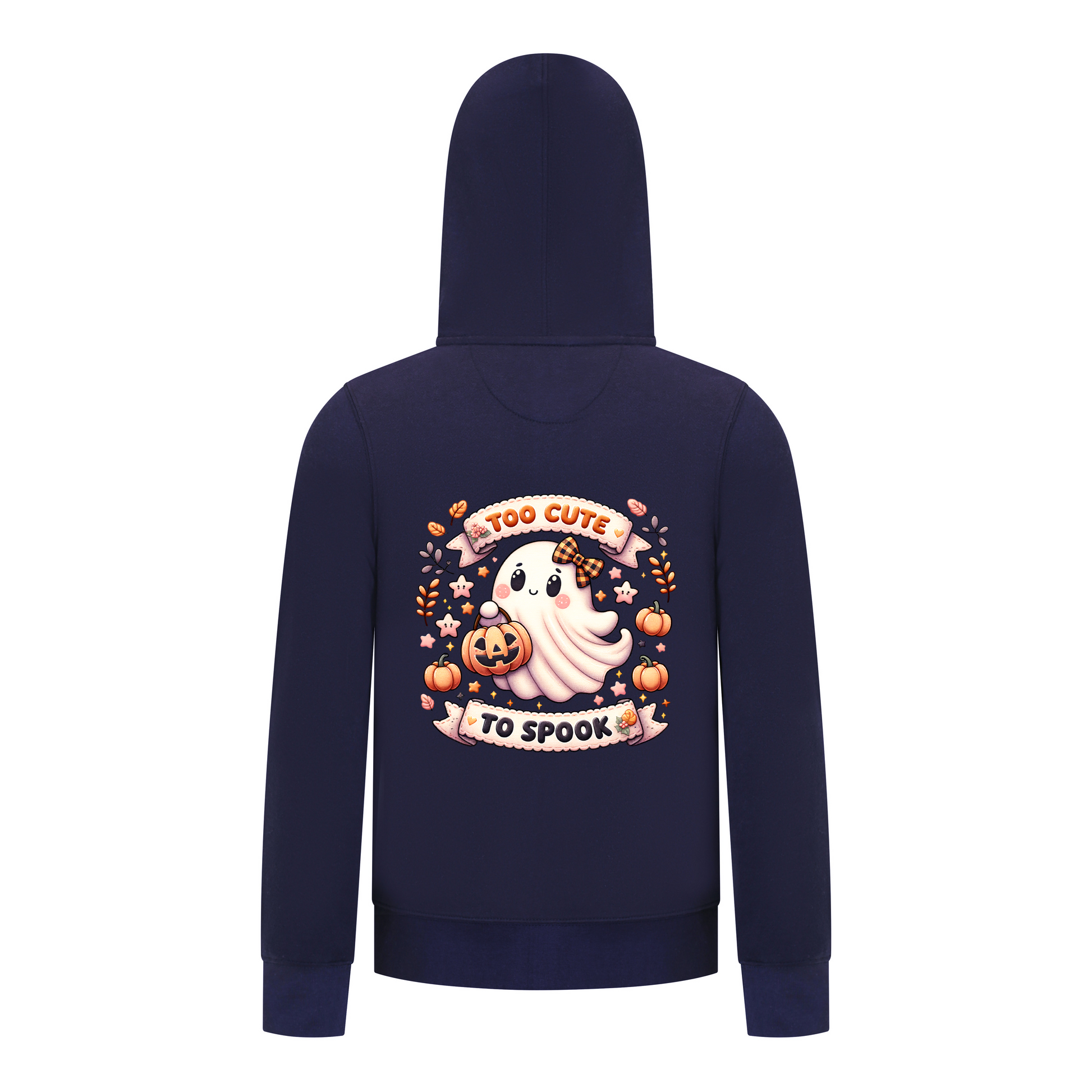 Everyday Kids “Too Cute To Spook” Halloween Zip Up Hoodie – Adorable Ghost with Pumpkin Lantern – Cozy Fall Sweatshirt for Girls, Navy