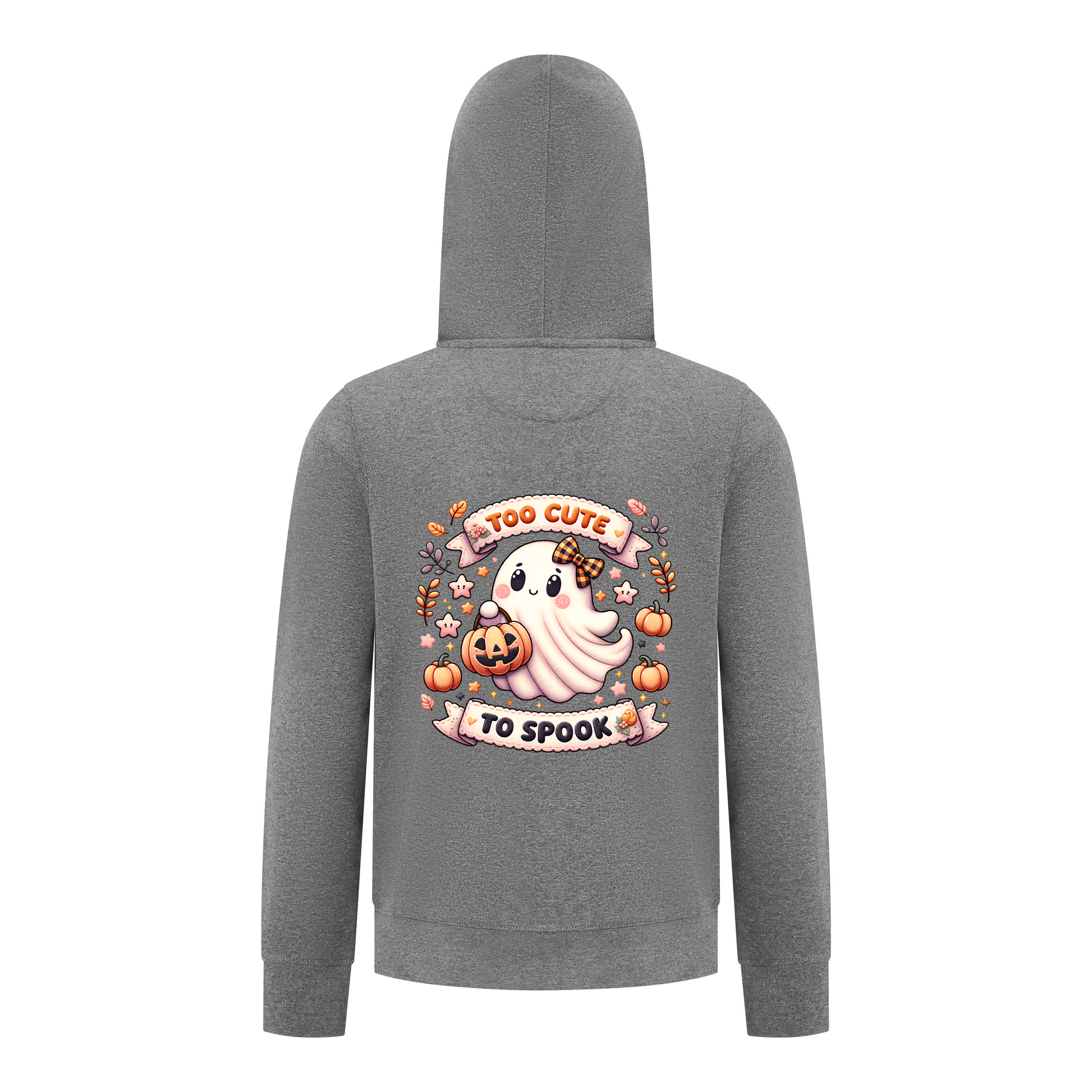 Everyday Kids “Too Cute To Spook” Halloween Zip Up Hoodie – Adorable Ghost with Pumpkin Lantern – Cozy Fall Sweatshirt for Girls, Charcoal Gray