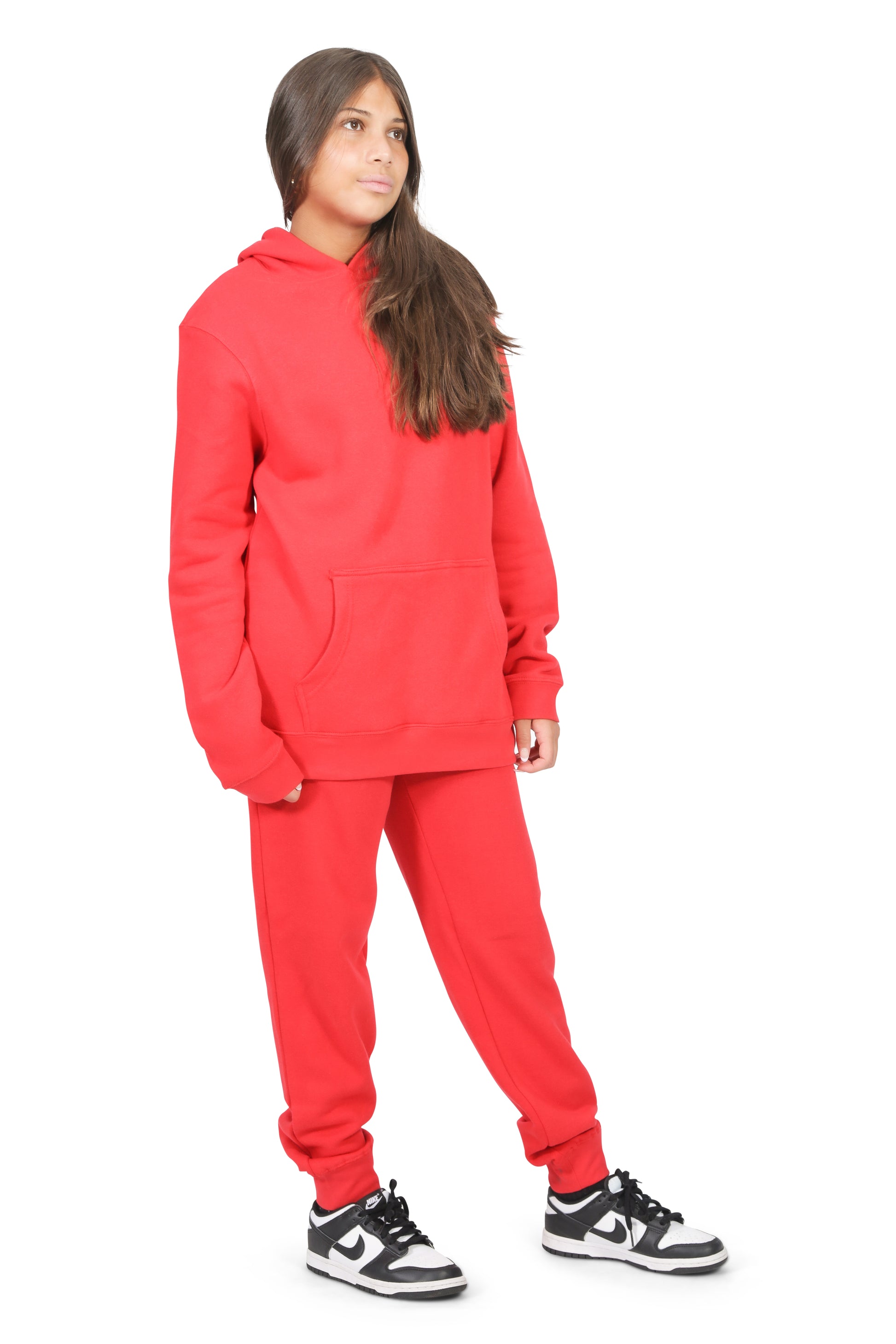Made from soft cotton fleece, these red sweatpants are her new go-to for everything from conquering outdoor adventures to curling up with her favorite book. The cozy ankle bands keep the cold out, so pair them with the matching sweatshirt for a warm and comfy outfit! Deep, modern-style pockets make these sweatpants as functional as they are stylish. Whether she’s tucking in her phone, lip balm, earbuds, or just warming her hands on a breezy day, the fleece-lined pockets offer the ultimate blend of utility and soft comfort. These fleece pants double as the coziest PJ bottoms she’ll ever own! With a stretchy waistband and soft-as-a-cloud fabric, they’re perfect for adding an extra layer of warmth to drift off into sweet dreams. Bedtime just got a lot more snuggly - and a whole lot cuter! These red sweatpants are made from a durable, breathable cotton blend that’s built to last through sledding, ice skating, and all her cold-weather activities. When the day winds down, they’re just as perfect for relaxing by the fire and sipping hot cocoa. These comfy and stylish fleece pants will be her trusted cool weather companion, order one or more of these Red Cotton Fleece Sweatpants today!