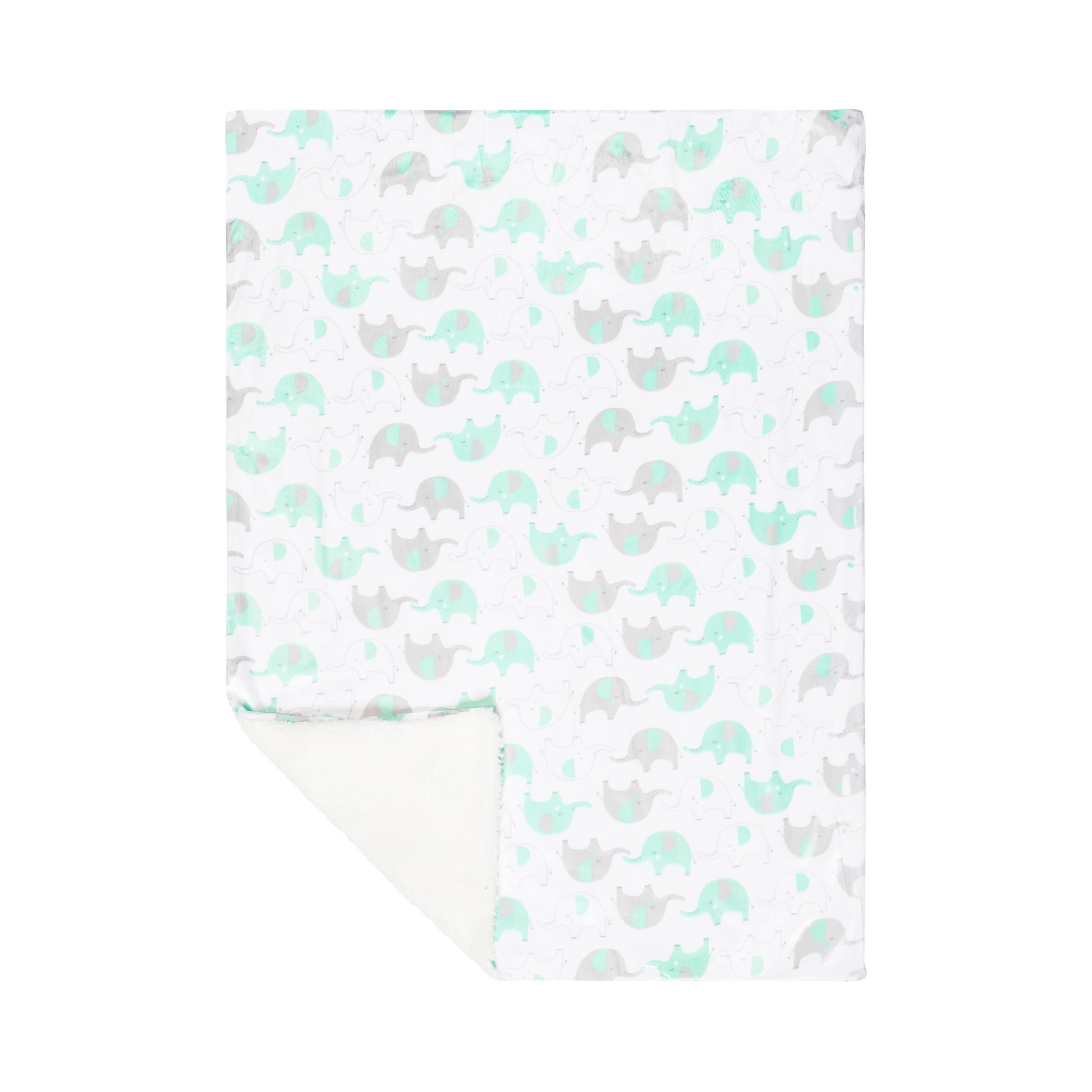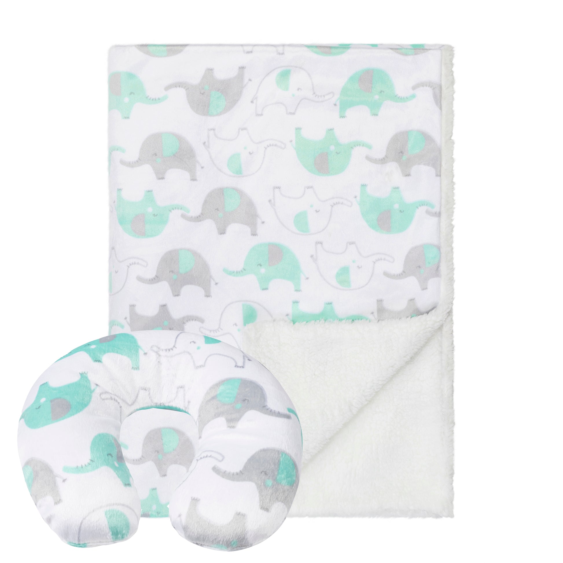 - THOUGHTFUL BABY SHOWER GIFT FOR BABY GIRLS AND BOYS: New parents will love how useful this gift set of a supportive neck pillow and a baby blanket will be. This plush white blanket with a green, gray and white elephant design will transition from a receiving blanket for infants to a toddler blanket for the crib!