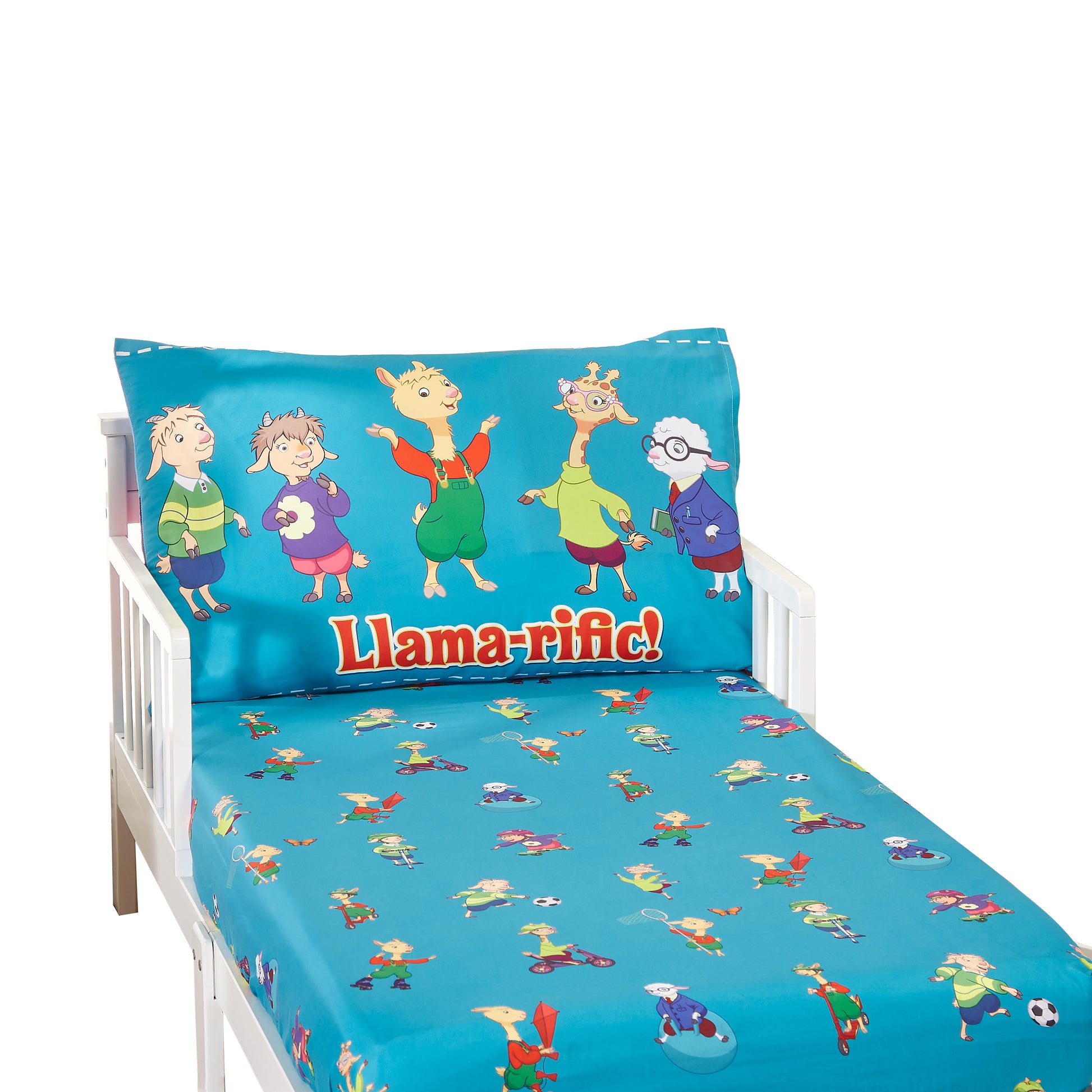 - BRIGHT BLUE TODDLER SHEET SET: Designed in a deep yet vibrant turquoise blue made for girls and boys, this sheet set features images from the popular book series and Netflix show, Llama Llama! His big smiles and excitement will welcome your child! Transitioning from crib to bed will be effortless!