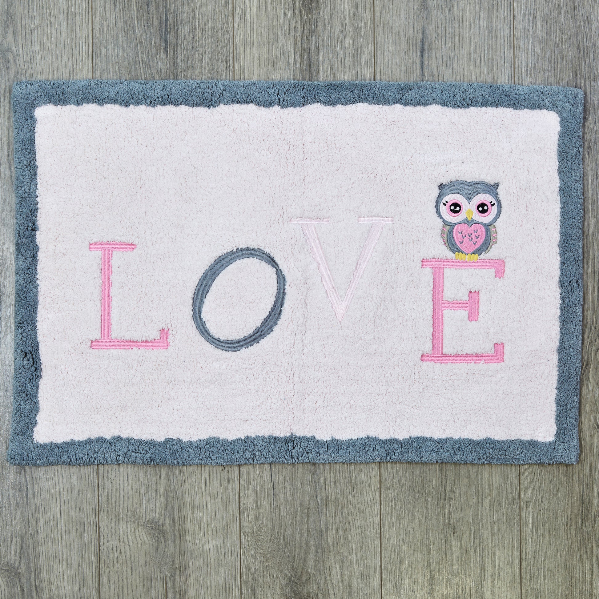 - COLORFUL AND IMAGINATIVE: In classic colors of pink, white and gray, this beautiful rug features a cute owl that little girls love sitting on the word LOVE! Create an enchanting forest she’ll adore! Use it as a cute kids bath mat or aesthetic rug for play areas!