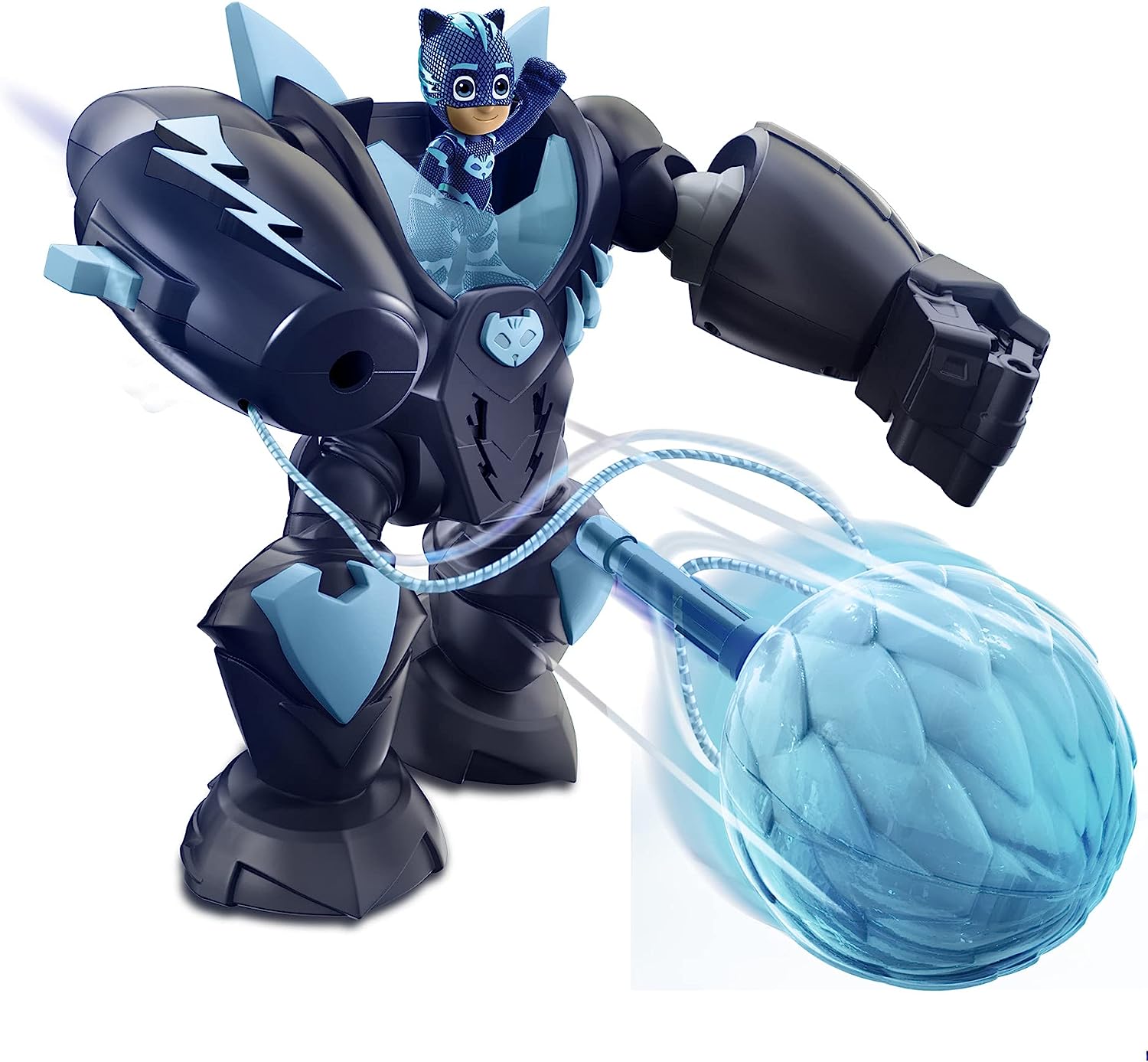 - SUPER CAT ACTION: The Robo-Catboy toy’s arms are equipped with a button-activated, launching Power Furball (tethered by a cord, so it won’t get lost) and extendable Super Cat Stripes