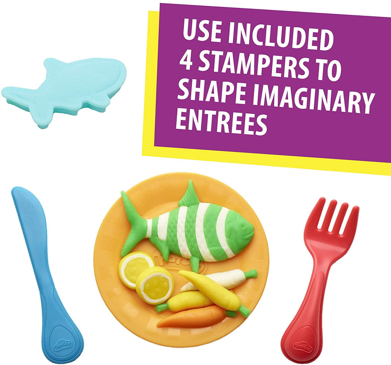 - Includes 4 stampers to shape imaginary entrees