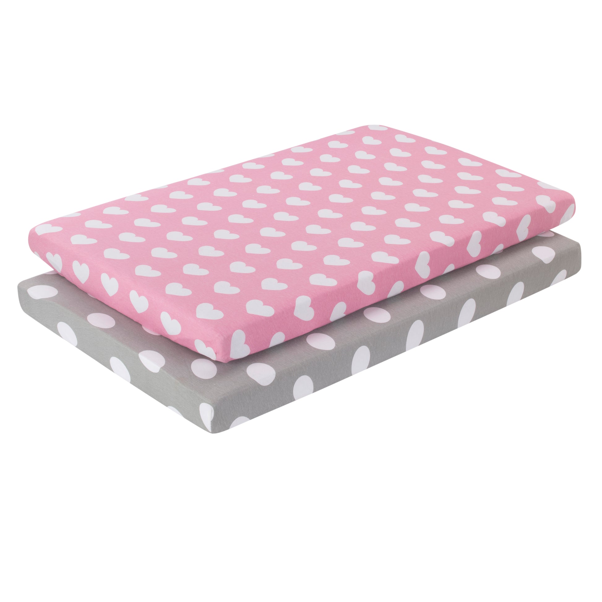 2 Pack Portable Crib Sheet - Hearts/Polka Dots