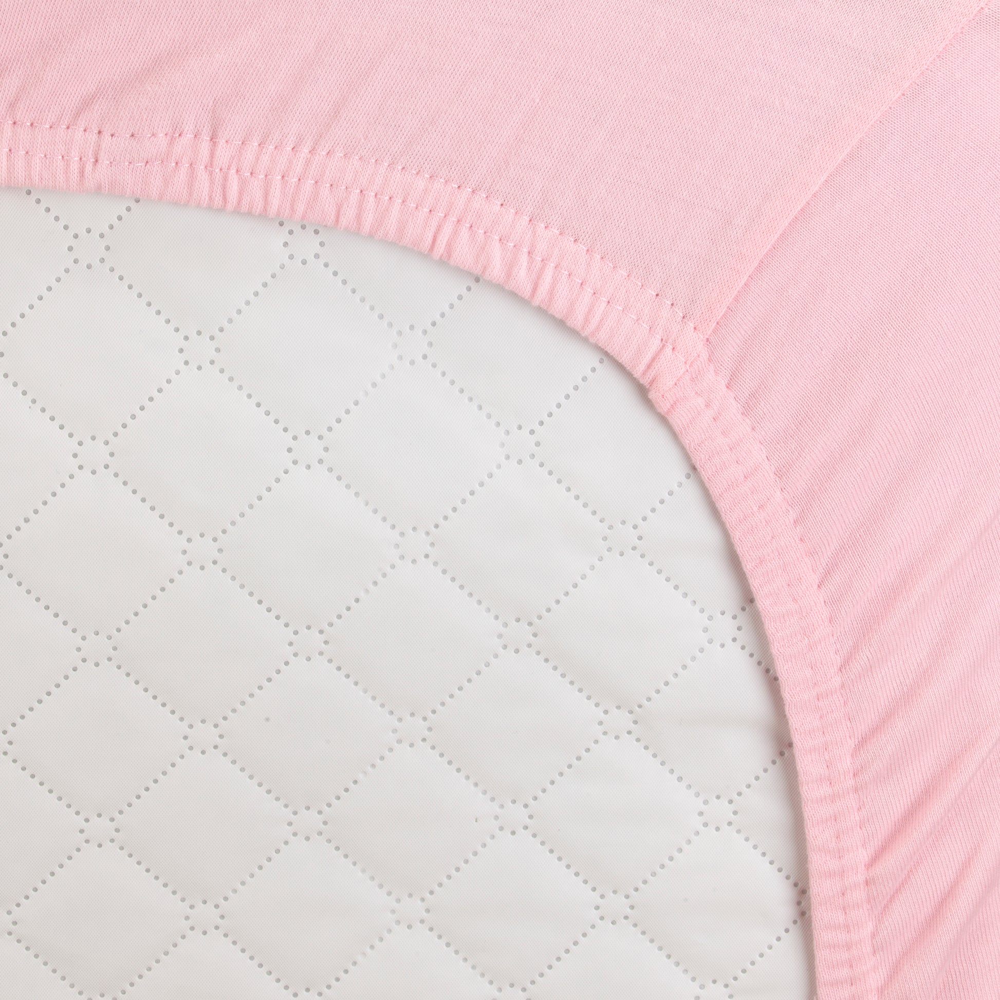 This solid colored sheet set in pretty colors of pink and purple are a set you’ll love not only for their easy-to-match colors, but also their supreme comfort and softness, all designed to help babies sleep better. Many of our competitors use “jersey knit”, but they don’t state cotton because they use a cotton or synthetic blend. Not ours, we use “100% Jersey Knit Cotton” for softness and breathable comfort. It’s the fabric we choose for special kids in our lives and we know you’ll want it to pamper your little ones, too! Each sheet measure 24" by 38" with 5" deep pockets and are designed to fit portable cribs, mini cribs, playpens and pack n play mattress or pads.