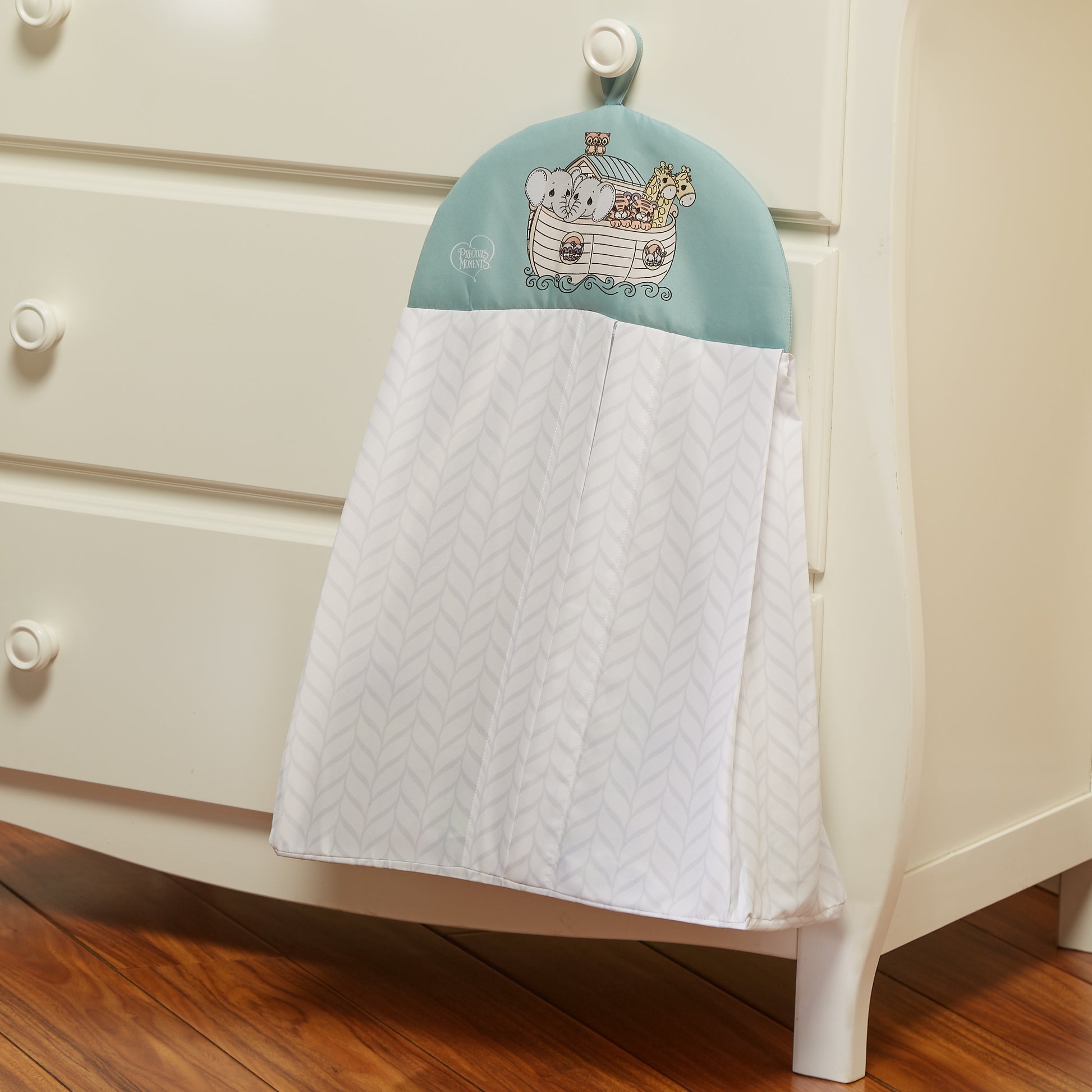 - A HANGING DIAPER ORGANIZER: For true function in your baby boy’s bedroom, we’ve included a complementary diaper stacker also designed in light colors of blue, gray and white and decorated with the Noah’s Ark image.