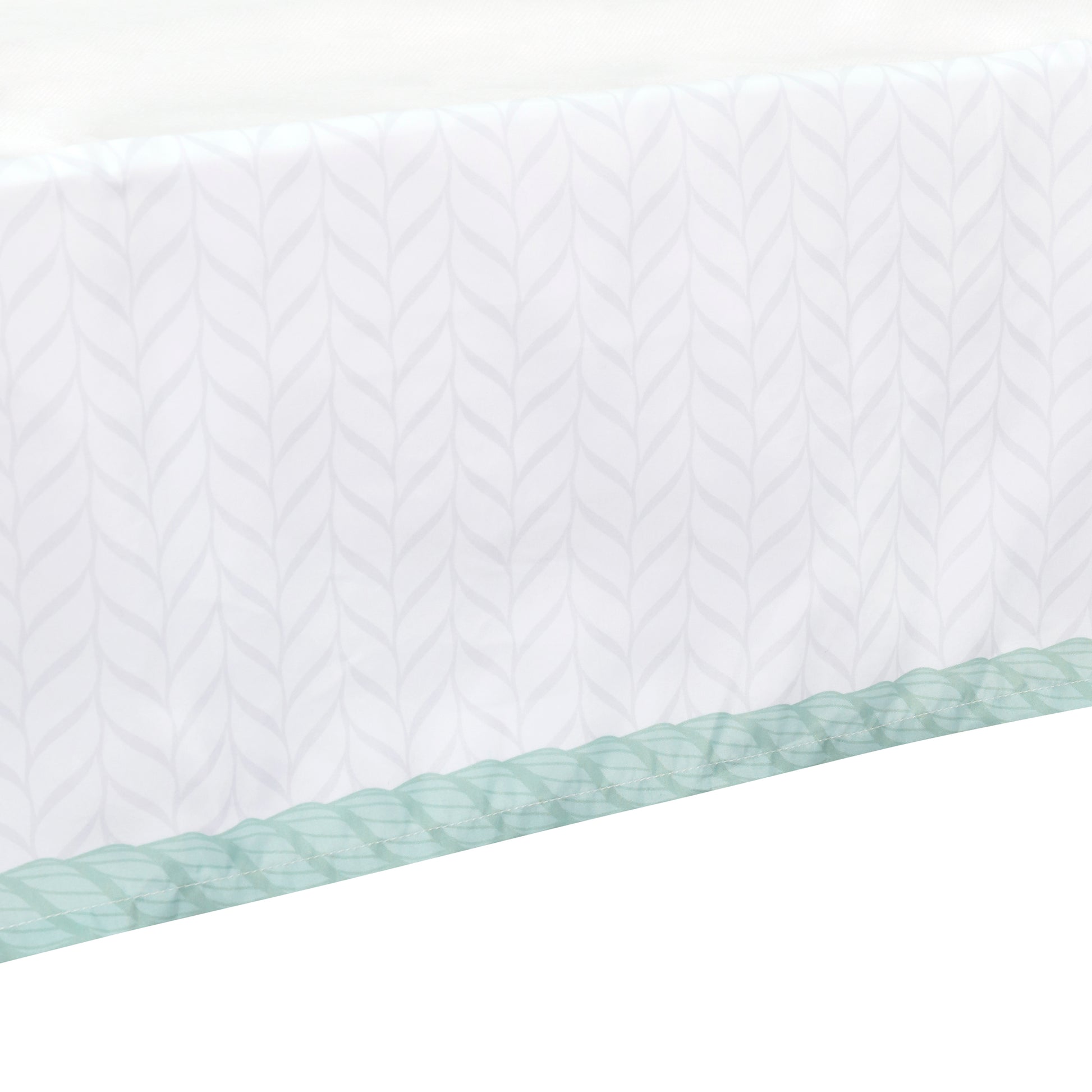 - FITS STANDARD SIZE CRIB MATTRESS: The quilt measures 42x33”, the fitted sheet with high quality elastic measures 52x28”, the dust ruffle with a 9” drop measures 51x27”. All pieces are machine washable and dryable – wash on gentle cycle with low dry to preserve the colors.