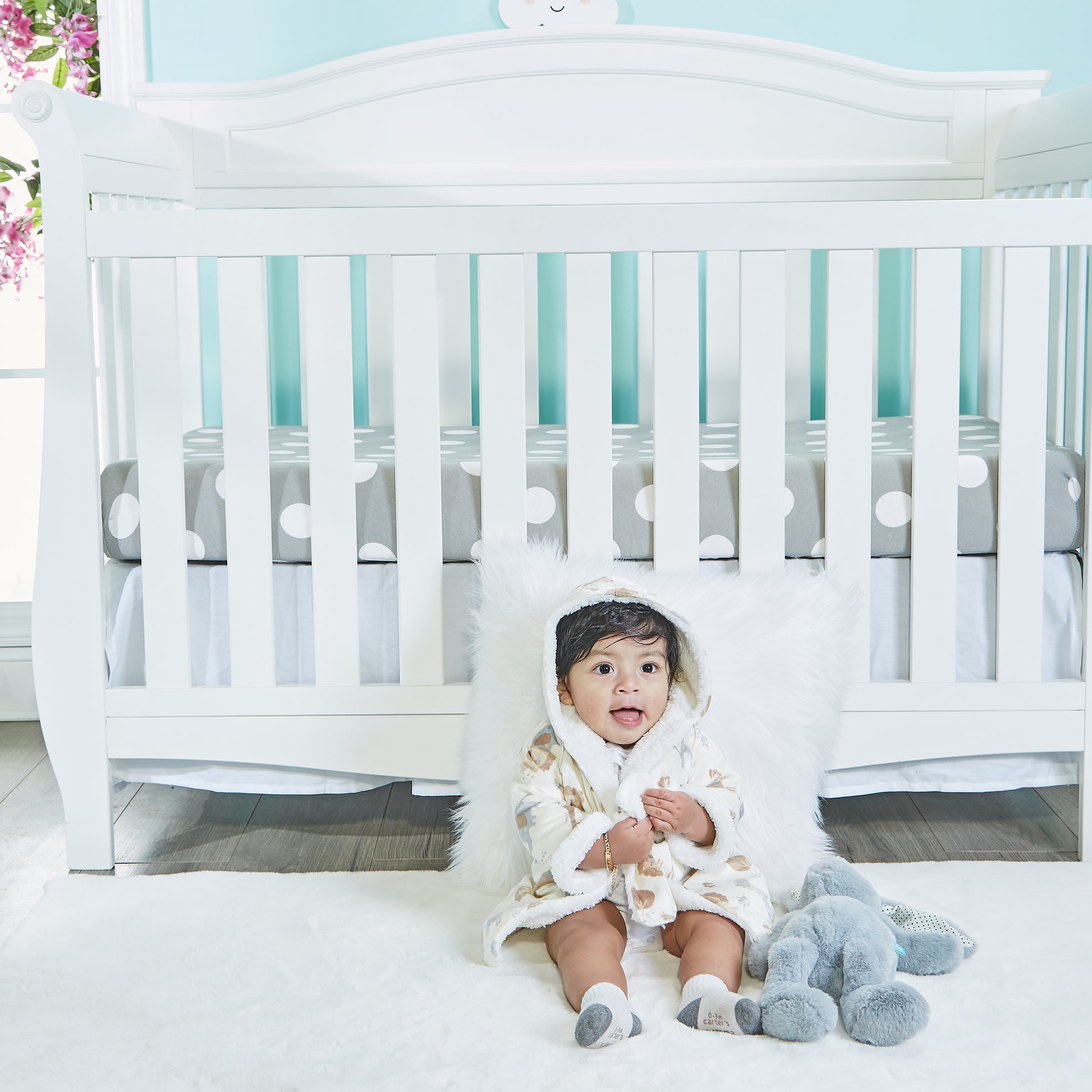 - KEEP BABY WARM AND COMFY: After a playful bath time spent splashing, wrap your baby in the Everyday Kids cuddly soft bathrobe to keep him or her toasty warm from the bathroom to the nursery. Note: The fleece lining isn’t absorbent, so towel dry first.